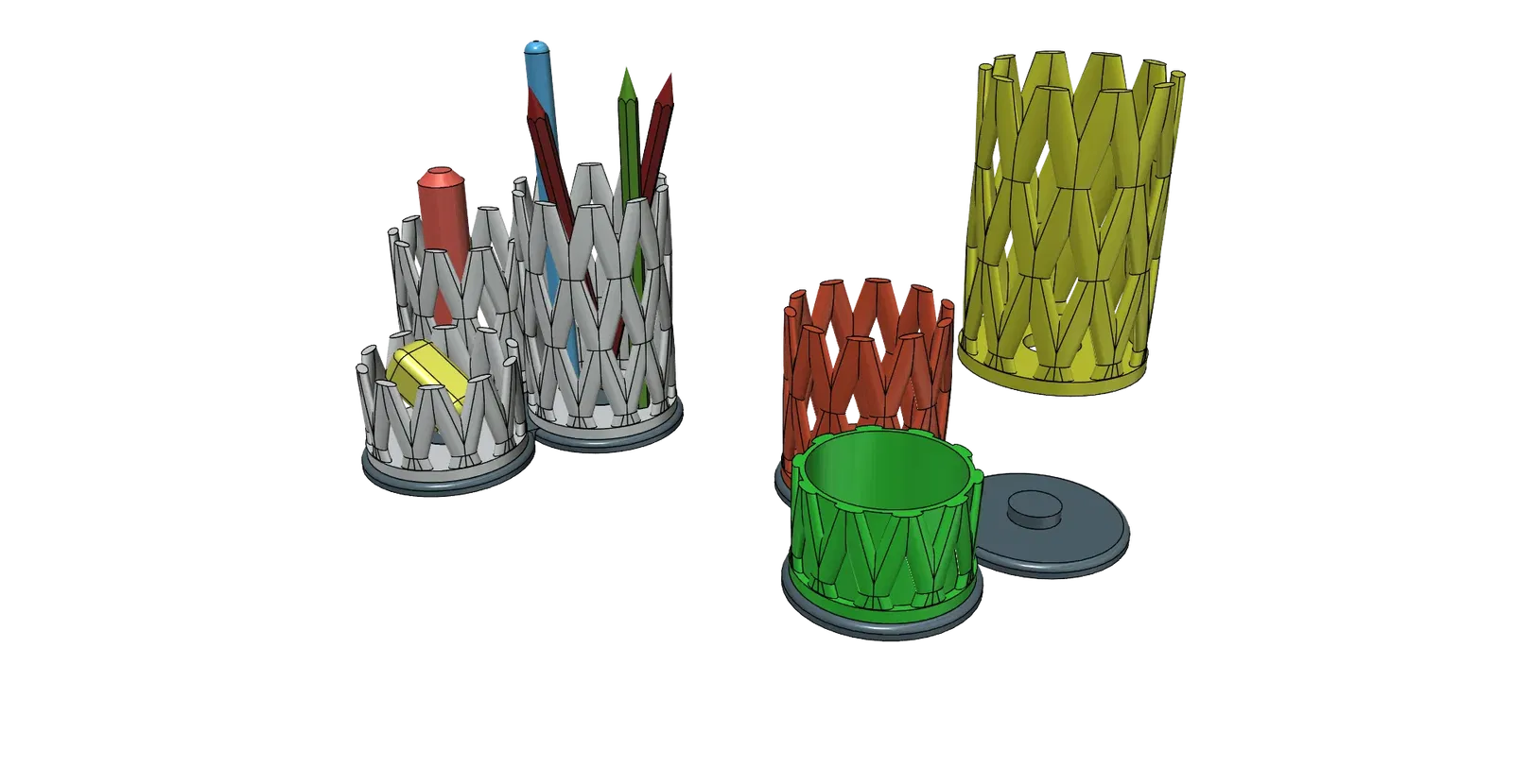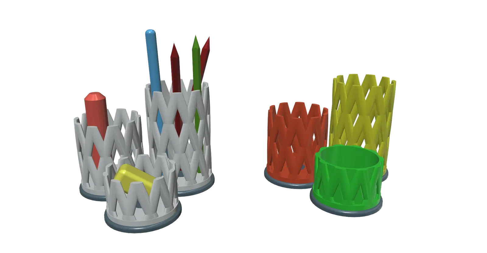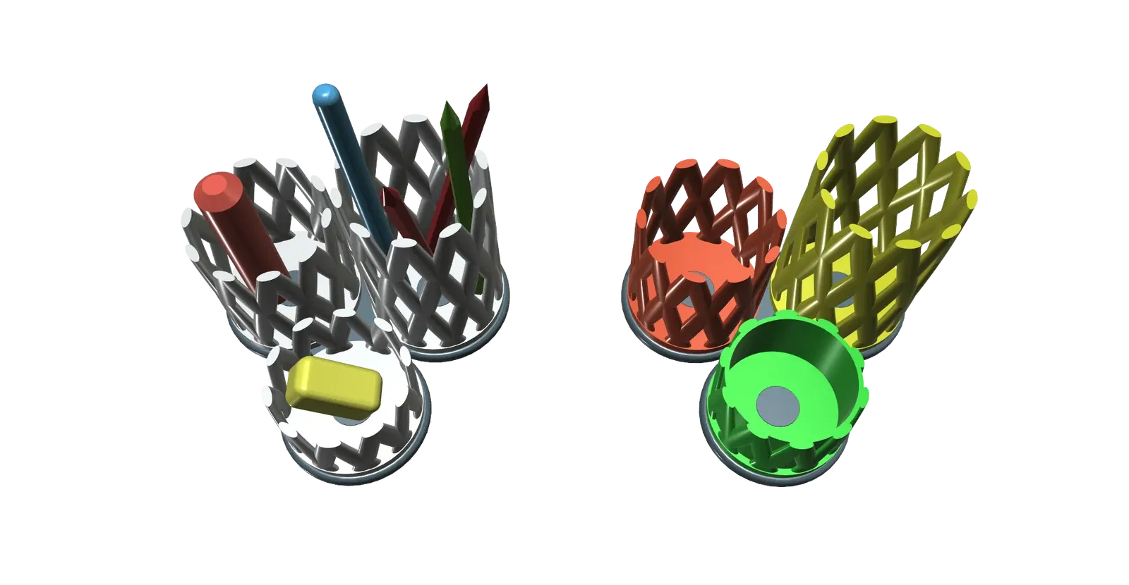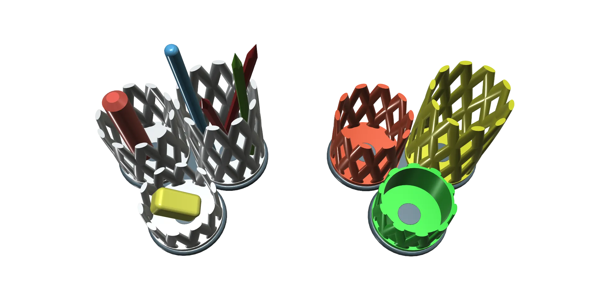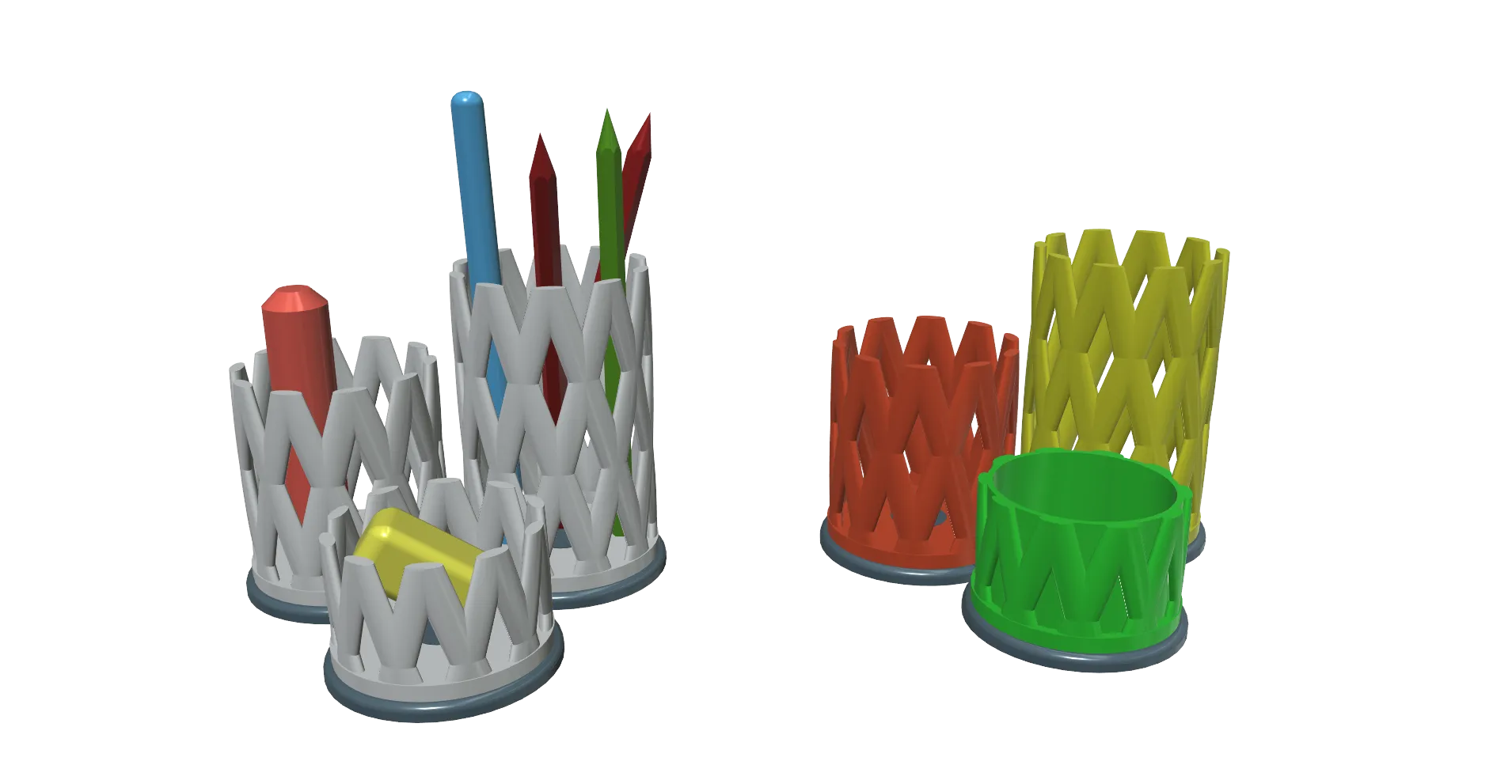 Giá đỡ bút chì có thể in dễ dàng. Kích thước CCA 13 x 13 x 10,5cm. Nó có thể được in mà không cần hỗ trợ, vì được sử dụng tối đa. 45 °
