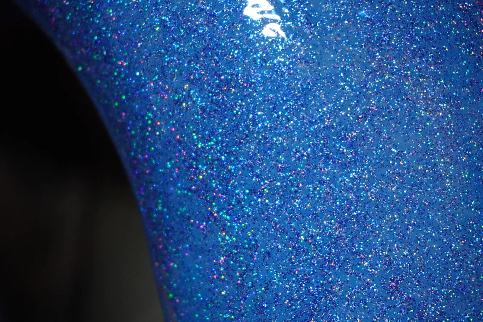 Cận cảnh lớp phủ epoxy resin glitter màu midnight blue.