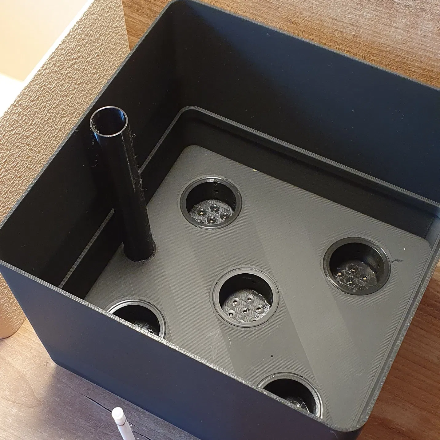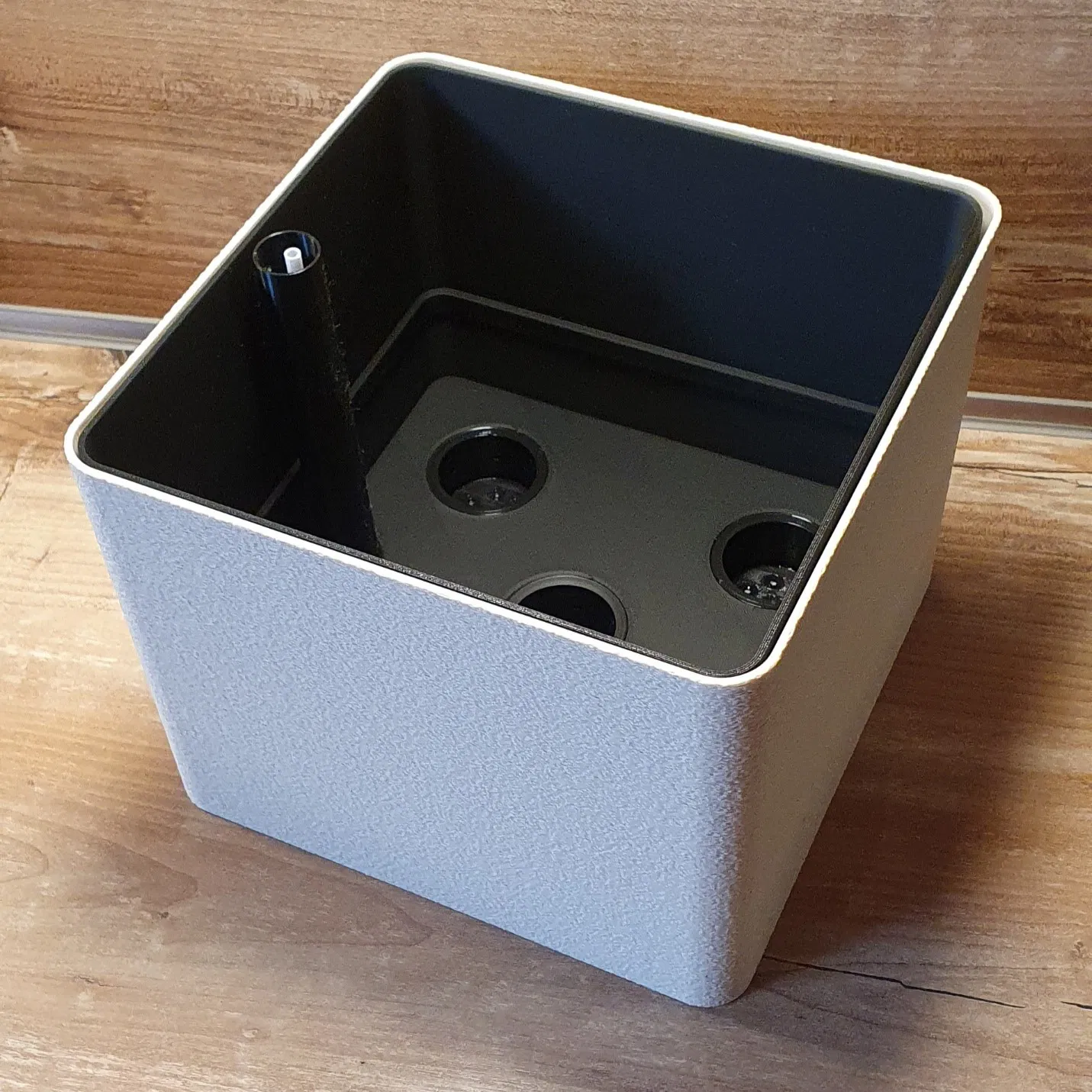 Pflanztopf là chậu trồng cây có water reservoir kèm water level indicator để dễ theo dõi mực nước. Đây là bản thiết kế đầu tiên; phần chậu ngoài được in với Fuzzy skin. Mời bạn góp ý để cải thiện.