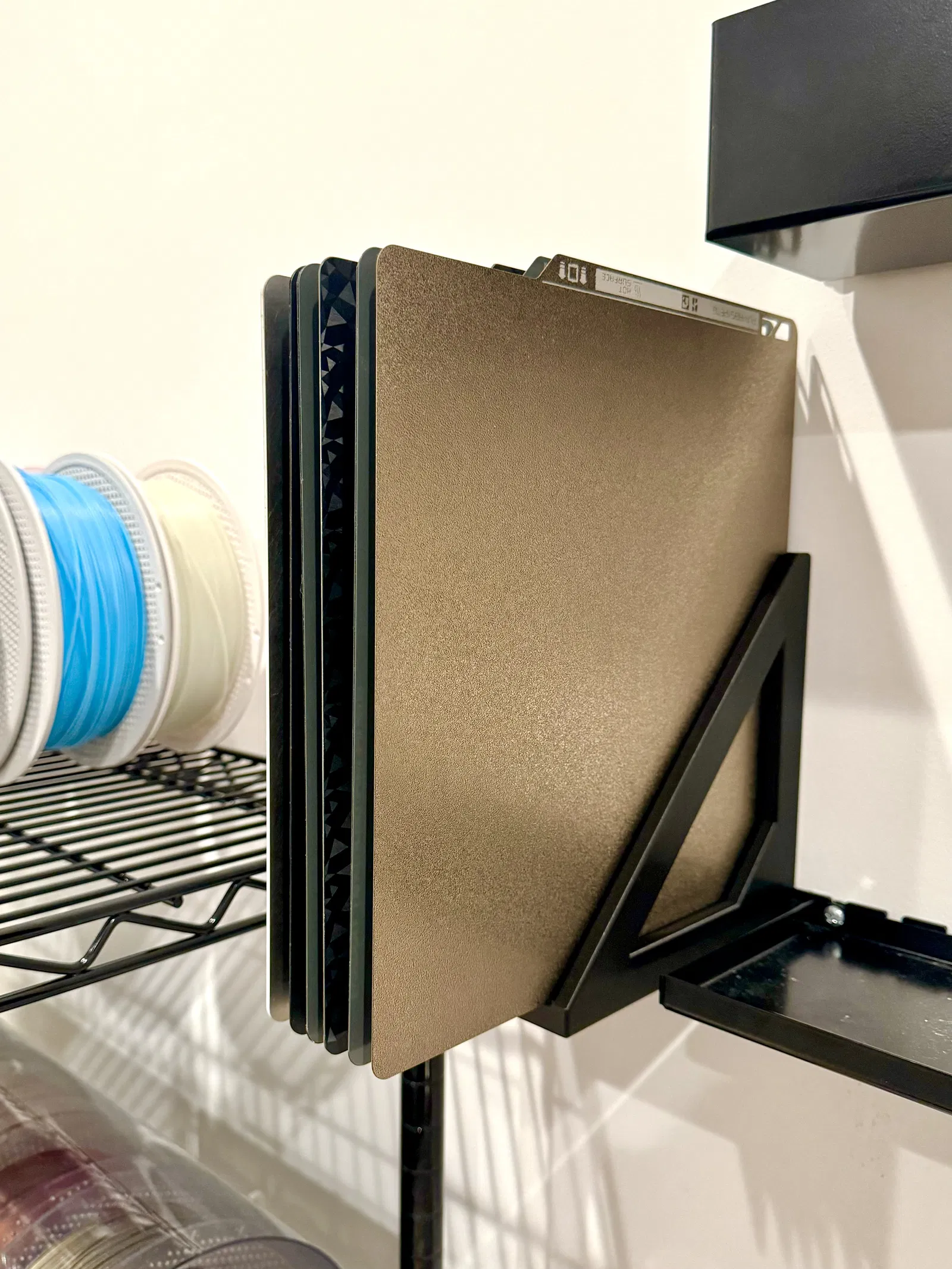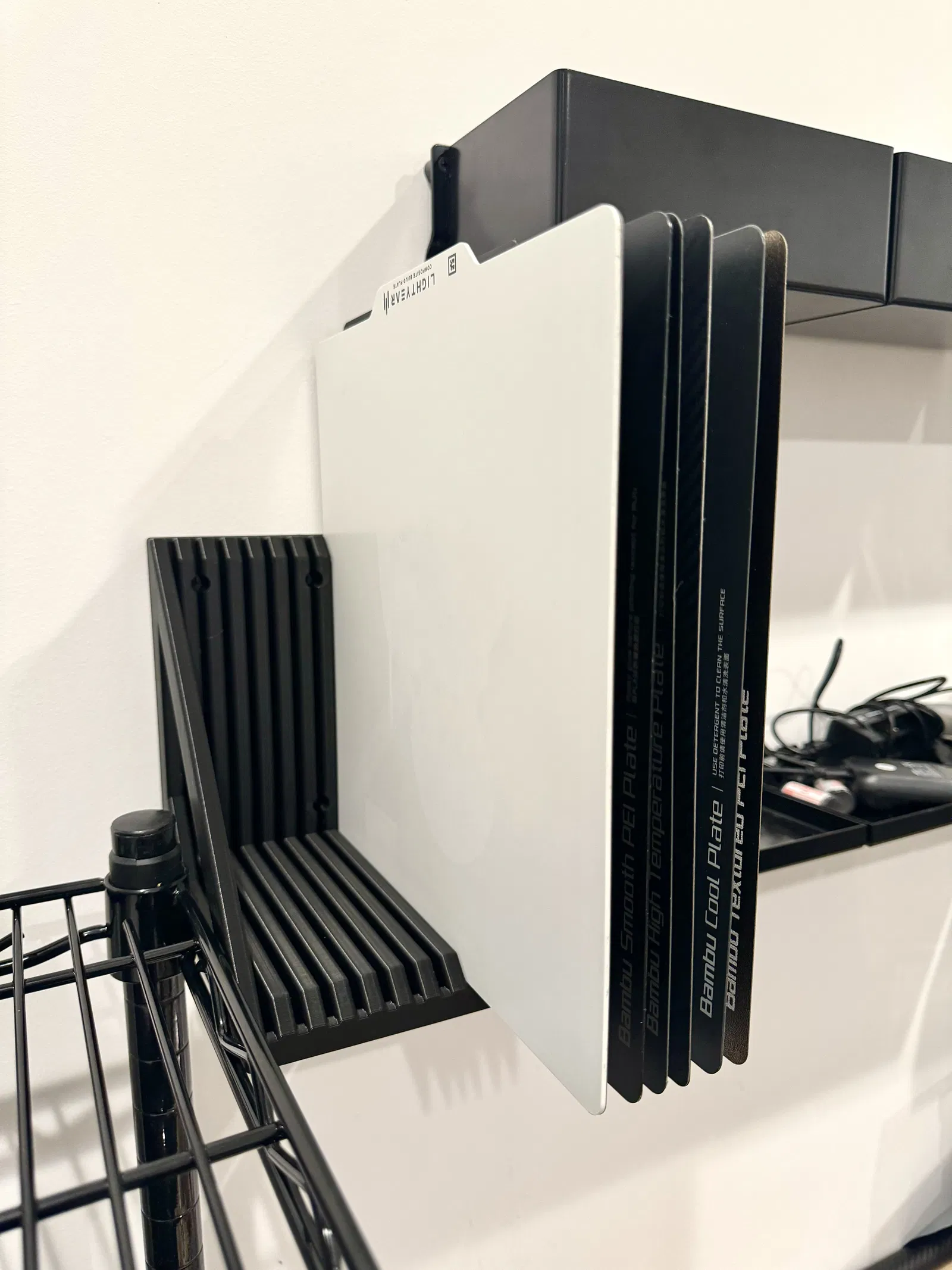 Giá treo tường build plate Bambu X1: 5–20 tấm, plate mỏng/dày (Lightyear G10)