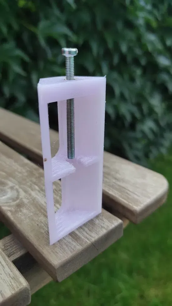 Để đặt trục bản lề vào vị trí, sẽ cần một lực nhẹ và định hướng. Tôi đã in một công cụ hướng dẫn giúp tôi đưa chốt vào bằng một con vít. Con vít được gắn với một chèn ren M3. Việc in ren bằng nhựa có khả năng sẽ không hoạt động, vì lực cần thiết quá lớn.