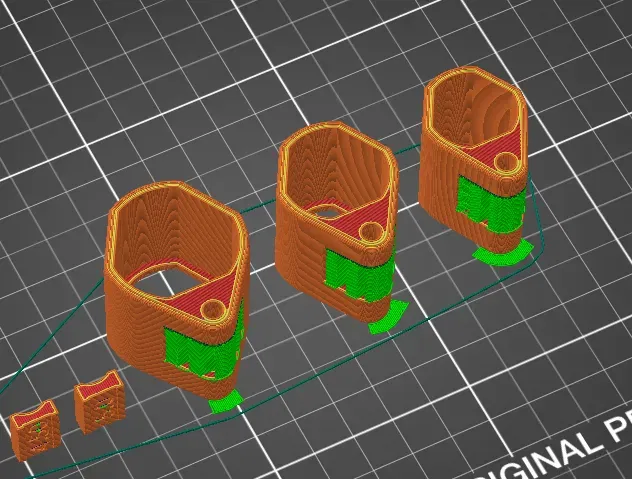 Vì đây là một phần làm việc dưới áp lực, nó sẽ yêu cầu PET-G hoặc PCTG ít nhất. Phần này in rất tốt với hỗ trợ kiểu khít của eSlicer. Cả hai bề mặt bị ảnh hưởng sẽ bị ẩn trong chân máy ảnh đã lắp ráp.