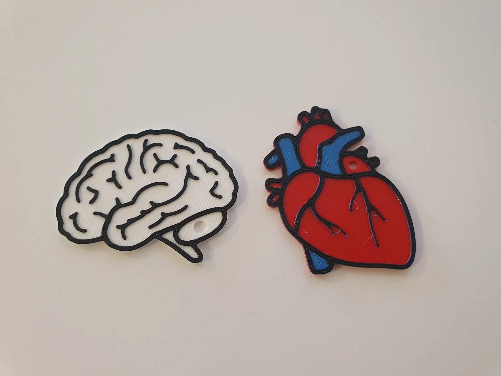 Đây là mẫu móc khóa hình não (anatomical) đơn giản, phù hợp để in nhiều màu bằng cách thay filament giữa chừng. Các vùng màu khác nhau được đùn ở những độ cao khác nhau, nên PrusaSlicer có thể tự động áp dụng các lần đổi màu để bạn slice cho dễ. Mẫu có một lỗ nhỏ để gắn khoen móc khóa. Màu nền mình dùng filament trắng, còn phần viền dùng filament đen, theo đúng thứ tự đó. Chúc bạn in vui!