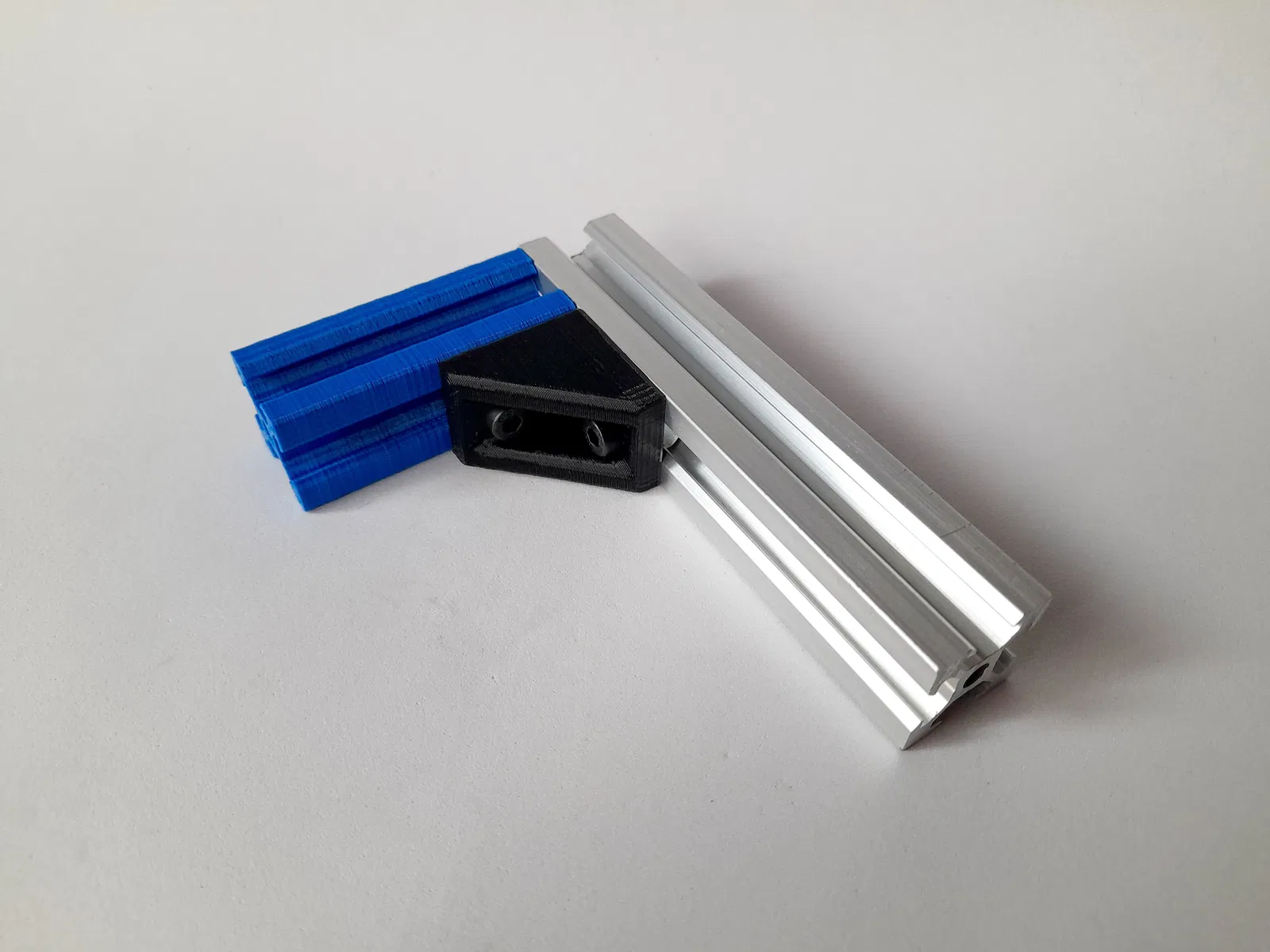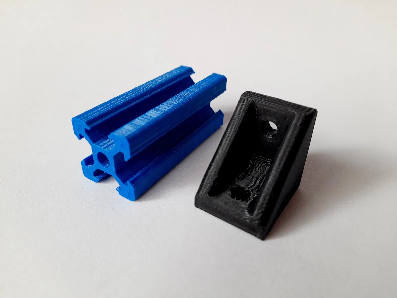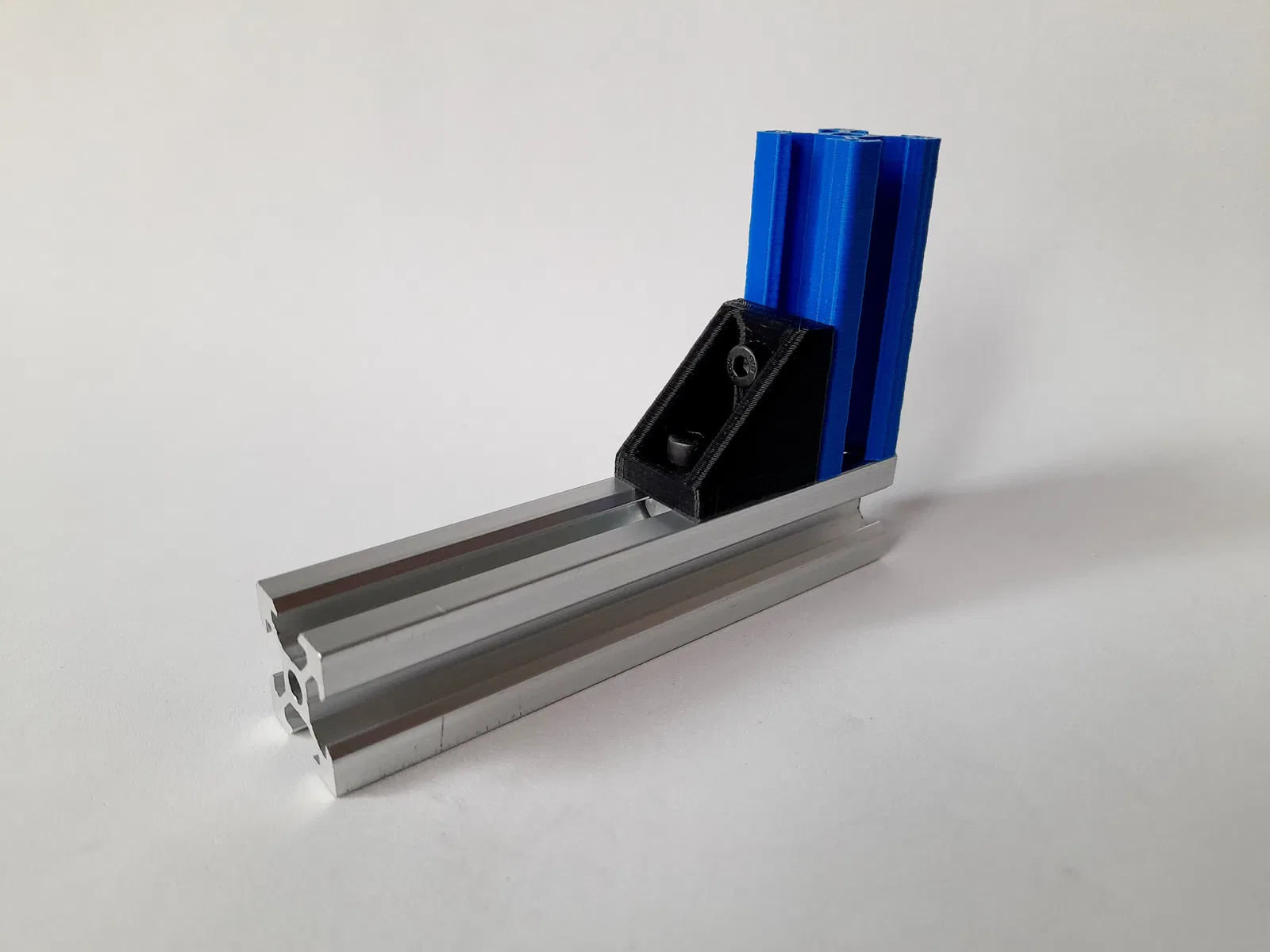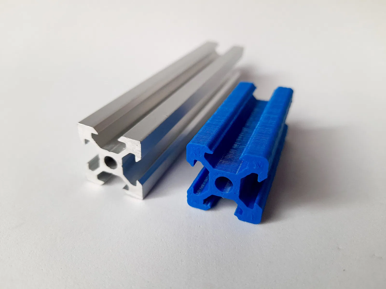 Profile V-slot 2020, có kèm theo chi tiết liên kết (union) giữa các profile góc 90° để phục vụ gia công bằng in 3D.