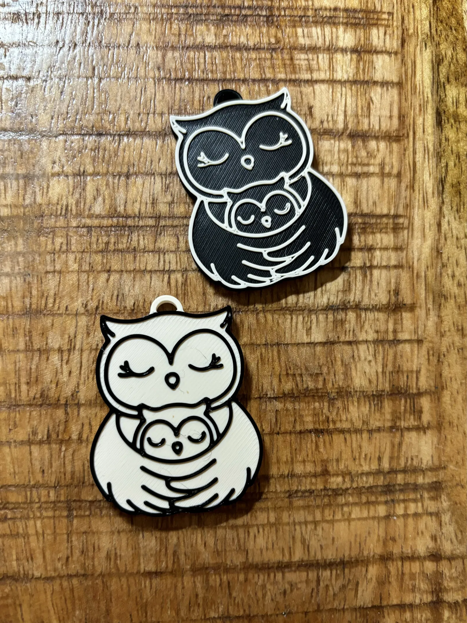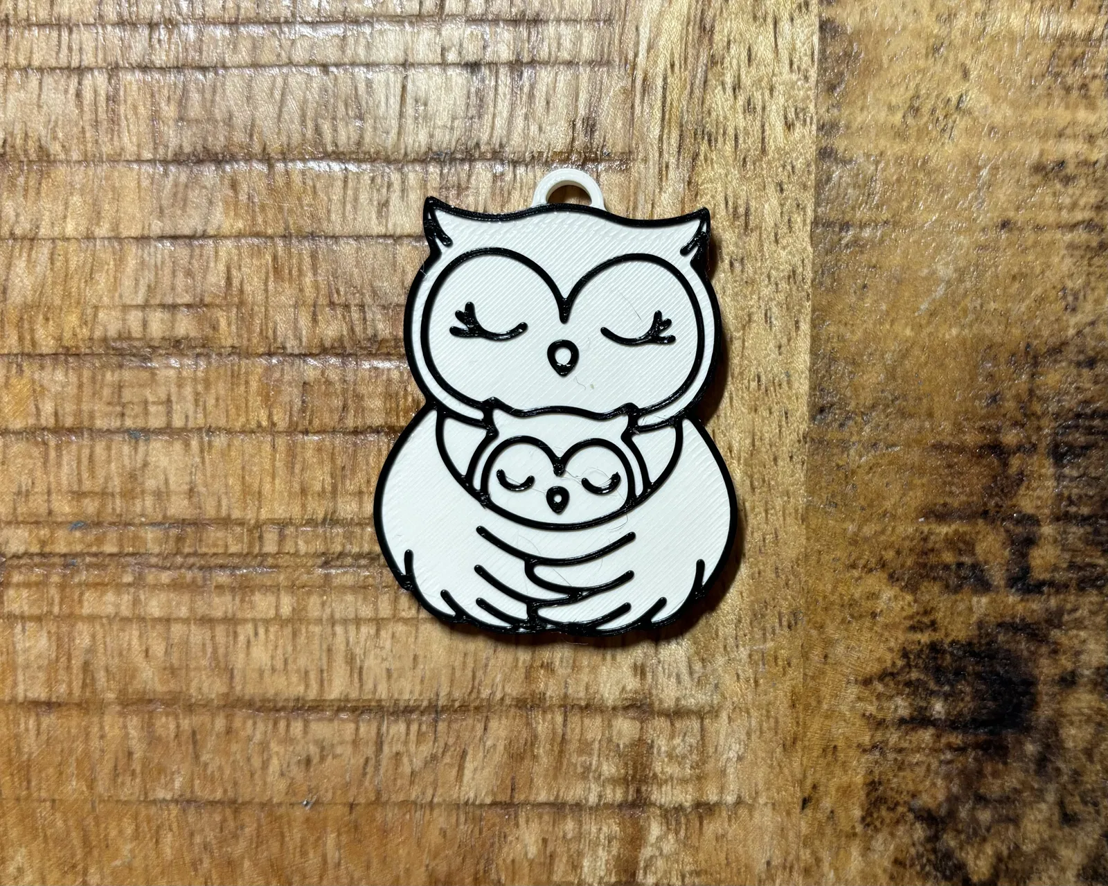 Móc khóa Đôi Cú Mẹ Con (Mommy owl with baby owl keychain) là món quà tặng độc đáo và ý nghĩa, đặc biệt phù hợp cho Ngày Của Mẹ. Với thiết kế hình ảnh mẹ cú ôm bé cú con ấm áp, mẫu móc khóa này mang đến cảm giác bình yên và tình cảm gia đình thiêng liêng. Bạn có thể dùng để treo chìa khóa, trang trí túi xách, balo hoặc làm quà tặng nhanh chóng. Mẫu này dễ in ấn với nhựa PLA, khuyến nghị layer height 0.2 mm và thay đổi màu ở 3.2 mm để có hiệu ứng hai màu đẹp mắt. Hãy tạo ra món quà ý nghĩa này để thể hiện tình yêu thương của bạn.