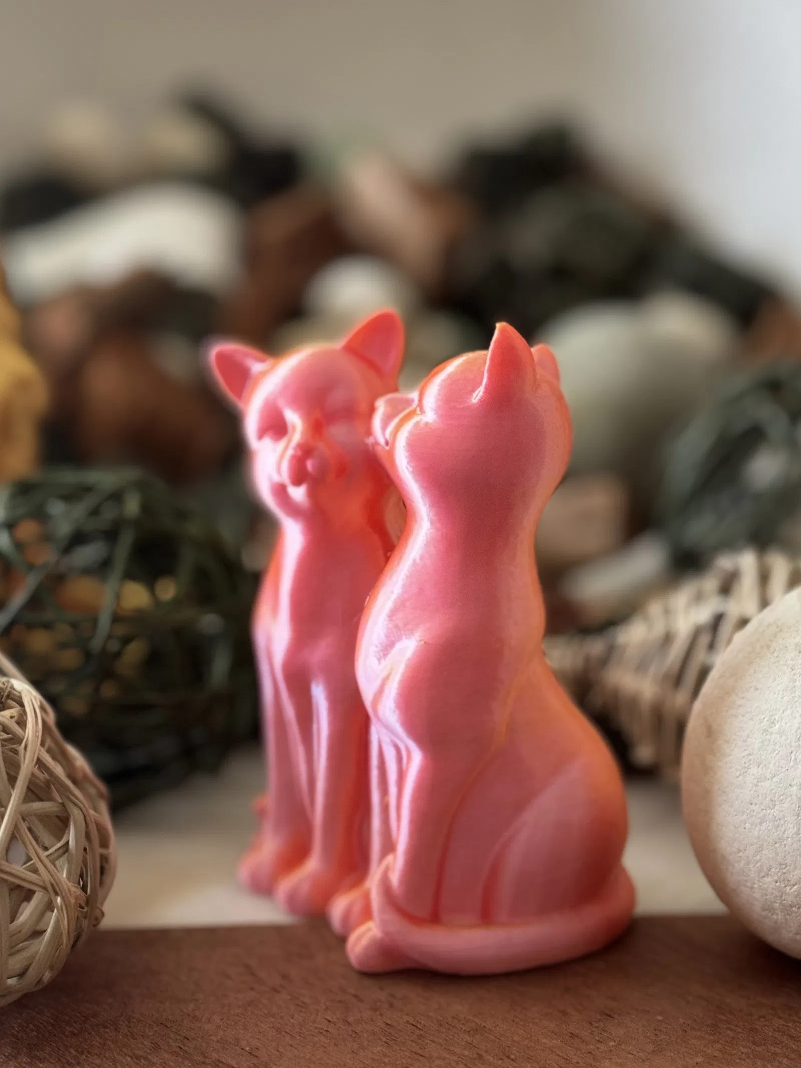 Mẫu Two Loving Cats là bản scan bằng Poly.cam của một bức tượng gồm hai chú mèo—một con ngồi, một con đứng—đang cọ mũi đầy tình cảm. Tác giả chia sẻ thêm link Etsy, TikTok và bộ scan trên Polycam.