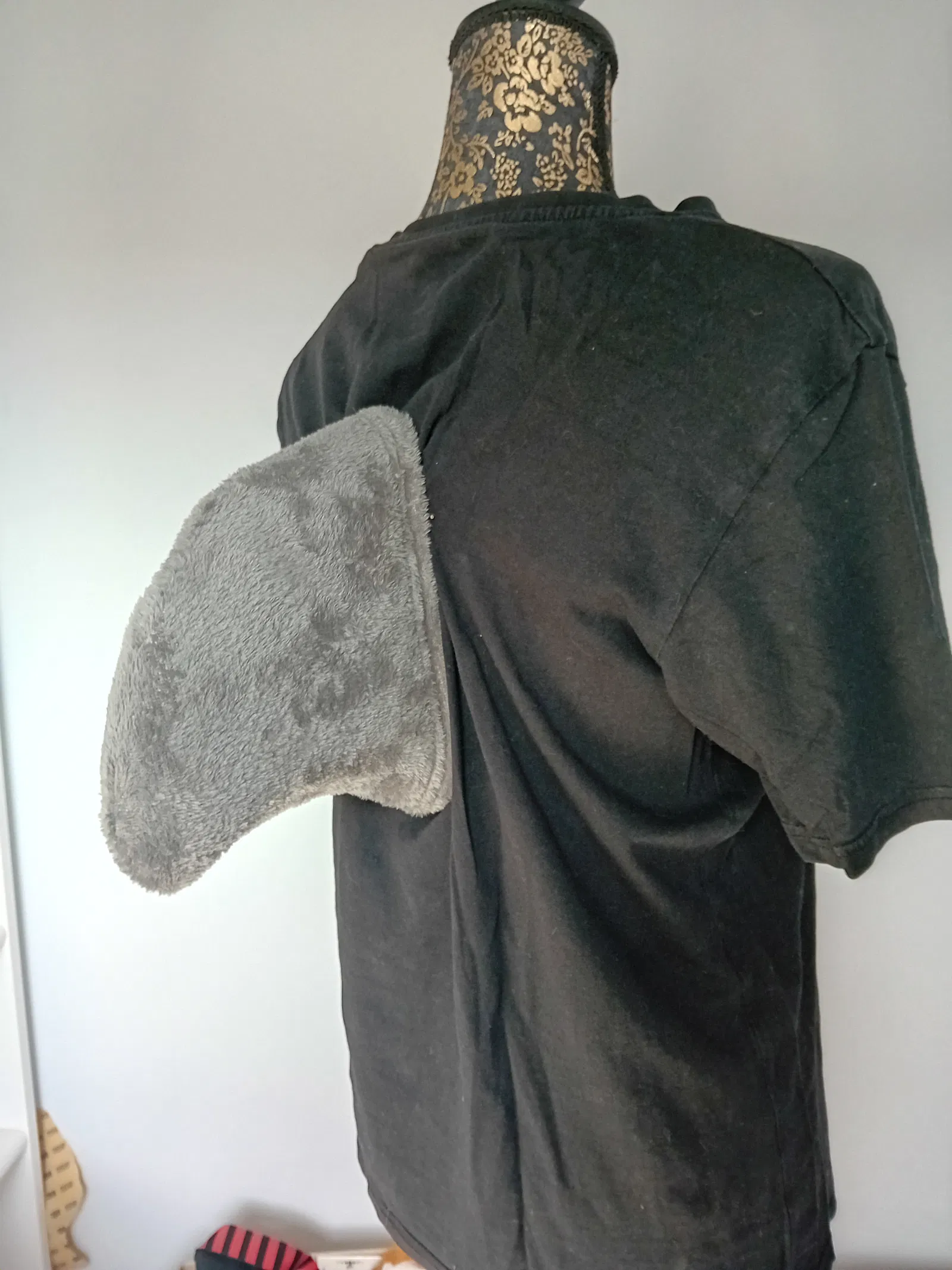 Một bộ back plate 2 phần cho thiết kế manokit/ vây cá mập/ cánh để mặc kèm áo. Phần plate có dây đeo hoạt động như ba lô và nằm dưới áo, còn phần có chỗ gắn vây/cánh sẽ nằm trên áo và trượt vào rãnh (channel). Bạn vẫn sẽ cần tự cắt gọt hoặc in thêm một cái vây để gắn vào. Mình có thể sẽ gắn thêm nam châm (magnets) để bấm “xương sống” vô cho chắc, nhưng hiện tại vậy chắc cũng ổn.
