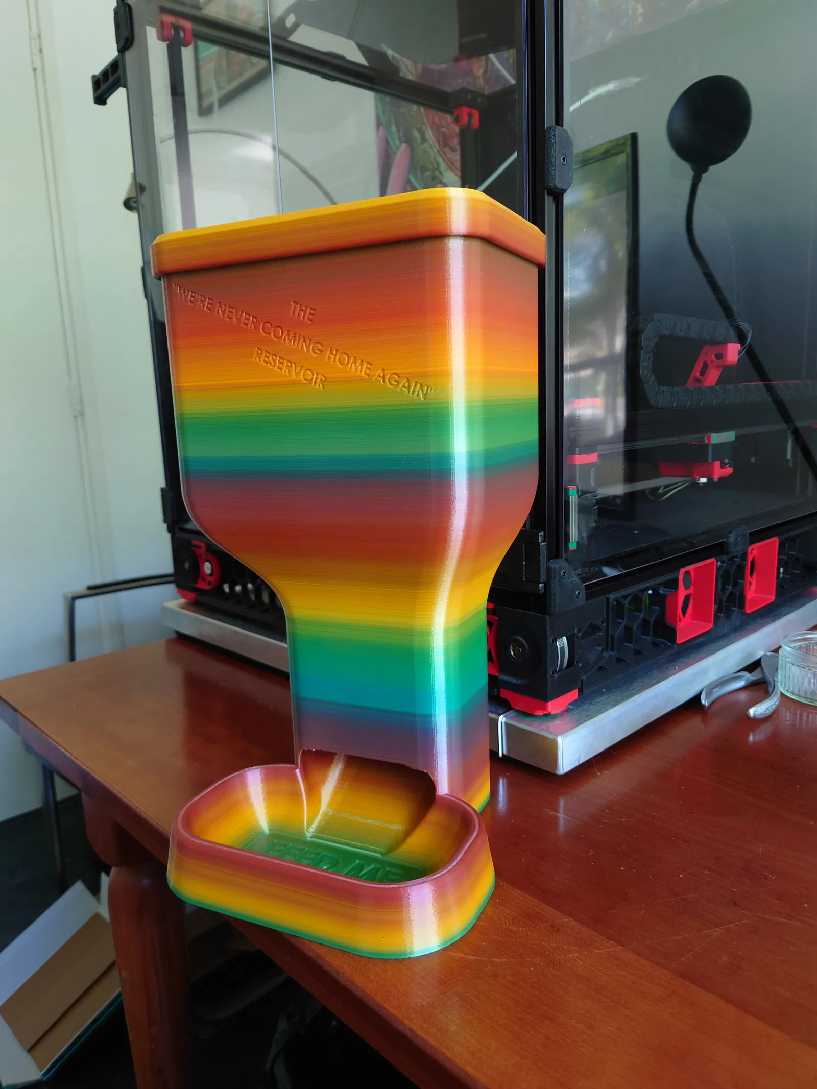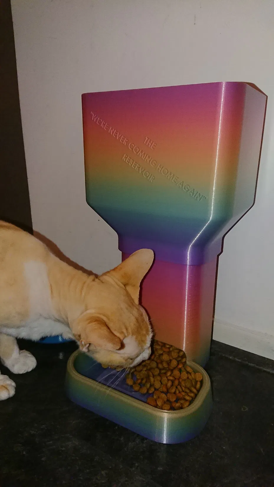 Mình thiết kế cái máng ăn tự động cho mèo này, có kèm phần nối dài bình chứa. Đây là cái tô tự đổ đầy, không cần điện tử hay phải can thiệp gì...
