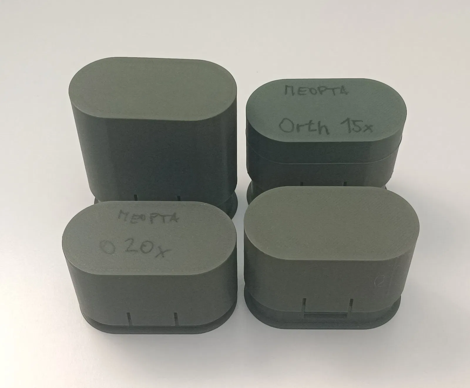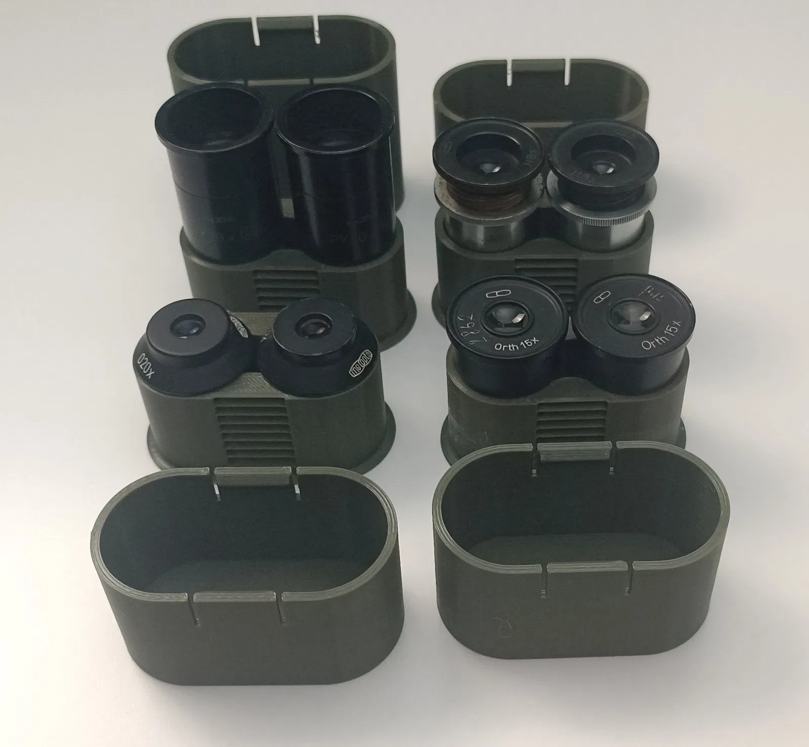 Hộp đựng universal cho 2 eyepiece kính hiển vi sinh học đường kính 23,2mm, phù hợp kính đời cũ như Carl Zeiss Jena, Meopta, PZO. Có 1 đáy và 2 loại nắp (thấp/cao) tùy chiều dài eyepiece.
