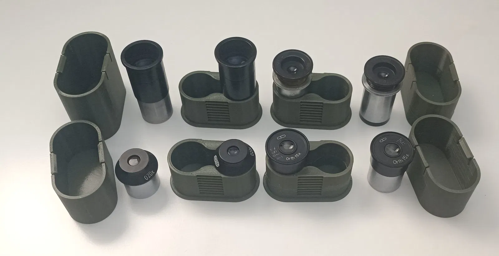 Mình thiết kế một hộp đựng chứa được 2 eyepiece cho kính hiển vi sinh học, đường kính 23,2mm.