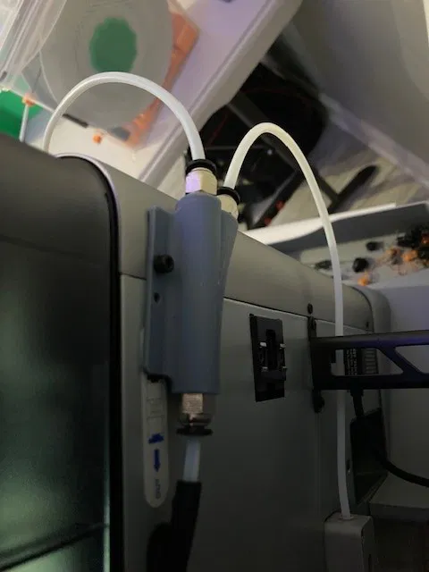 Vài ghi chú: Mình in PLA với layer height 0.16 để dung sai (tolerances) chặt hơn. Mình cũng dùng mũi khoan 1/16" cầm bằng tay (không dùng máy khoan) để vuốt nhẹ cho mịn cái lỗ thoát (exit hole) và chọc xuyên mấy sợi tơ nhỏ còn sót lại. (Bên exit là bên chỉ có 1 lỗ.) Mấy lỗ vào (entrance holes) ở mặt còn lại ra đúng size luôn. Lỗ exit cần phải rất khít và sát để ăn khớp hoàn hảo với ranh giới PC4-M10/ống teflon, nên bên đó là quan trọng nhất và cần làm kỹ.