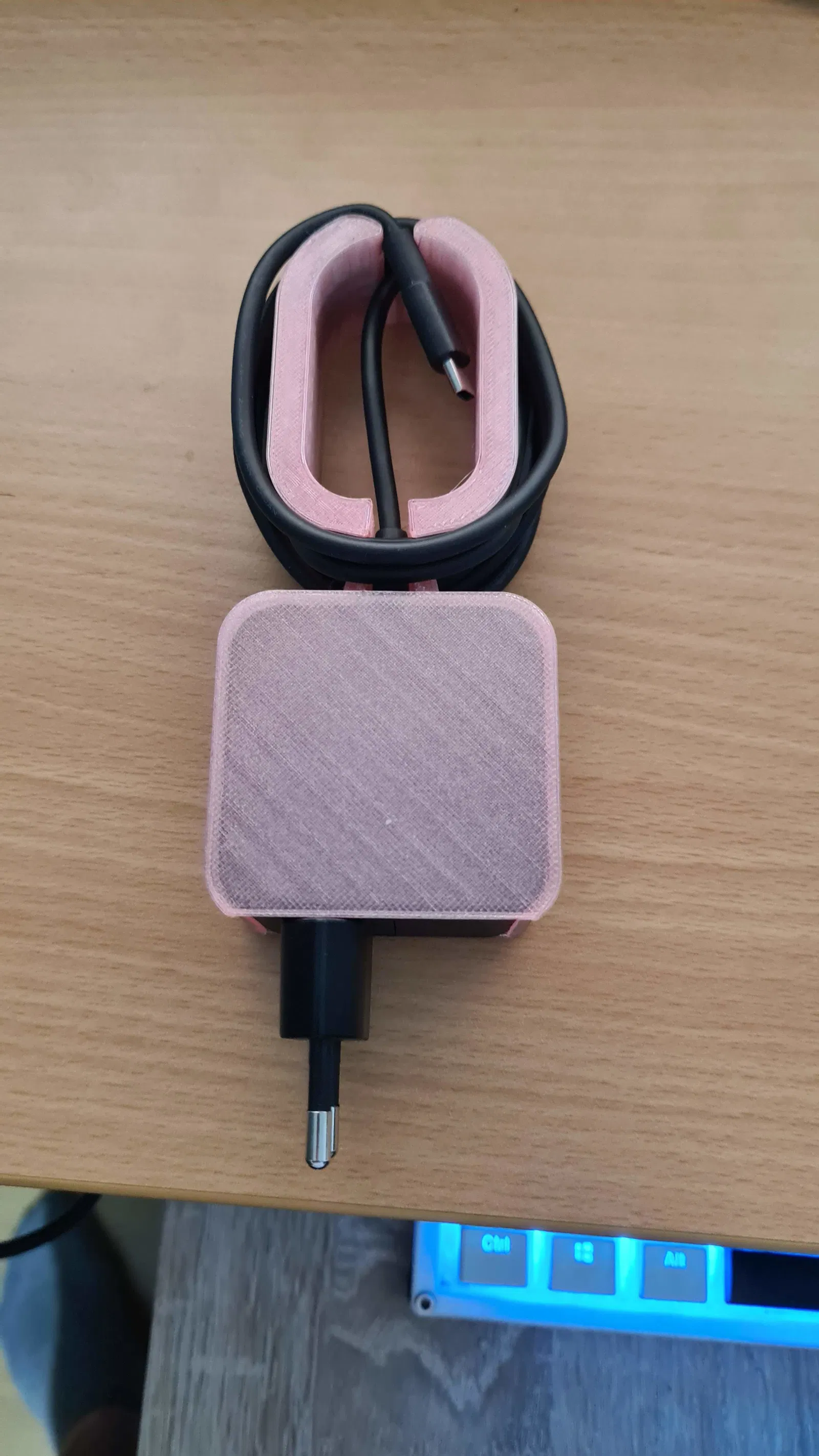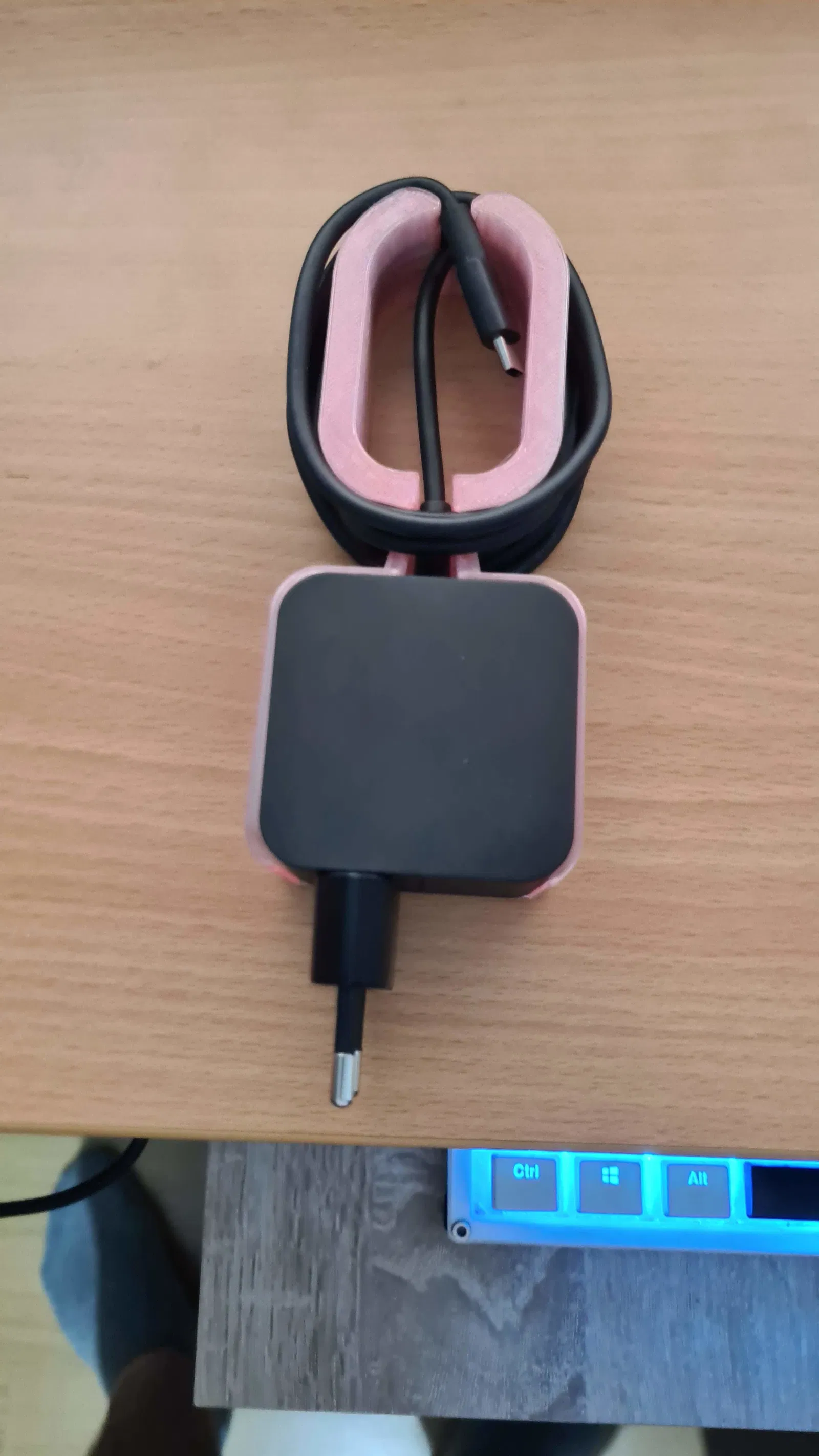 Thiết kế của em nó đơn giản nhưng mà hiệu quả lắm. Phần củ sạc thì mình gắn cái đế vuông vừa khít, còn phần dây thì quấn gọn vào cái khung hình oval màu hồng phía trên. Nhìn là biết ngay công dụng liền: sắp xếp dây sạc gọn gàng, không bị rối, không bị xoắn, lại còn bảo vệ dây cáp nữa. Đặc biệt là nó fit hoàn hảo vào khe chứa đồ trong case của Steam Deck luôn, tiện lợi vô cùng, mang đi đâu cũng được mà không sợ bị cấn hay hư hỏng gì.