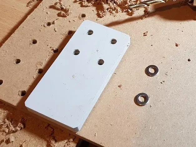 - Do sự khác biệt trong độ chính xác của máy in, bạn có thể gặp khó khăn khi lắp các núm hướng dẫn vào các lỗ. Điều này có thể dễ dàng giải quyết bằng cách làm nóng nhẹ nhàng các núm bằng súng nhiệt và nhanh chóng ấn chúng vào các lỗ. Điều này có thể cần được lặp lại một vài lần trước khi các núm biến dạng đủ để dễ dàng trượt vào và ra khỏi các lỗ mà không có nhiều khoảng trống. Bạn muốn có thể ấn jig sát với vật liệu mà bạn đang khoan để đảm bảo độ chính xác và tránh làm vật liệu bị nứt.