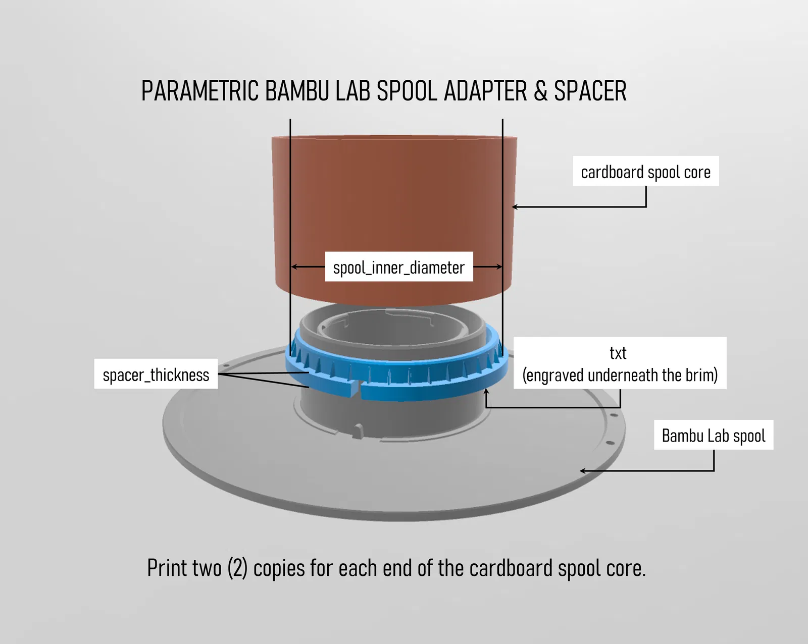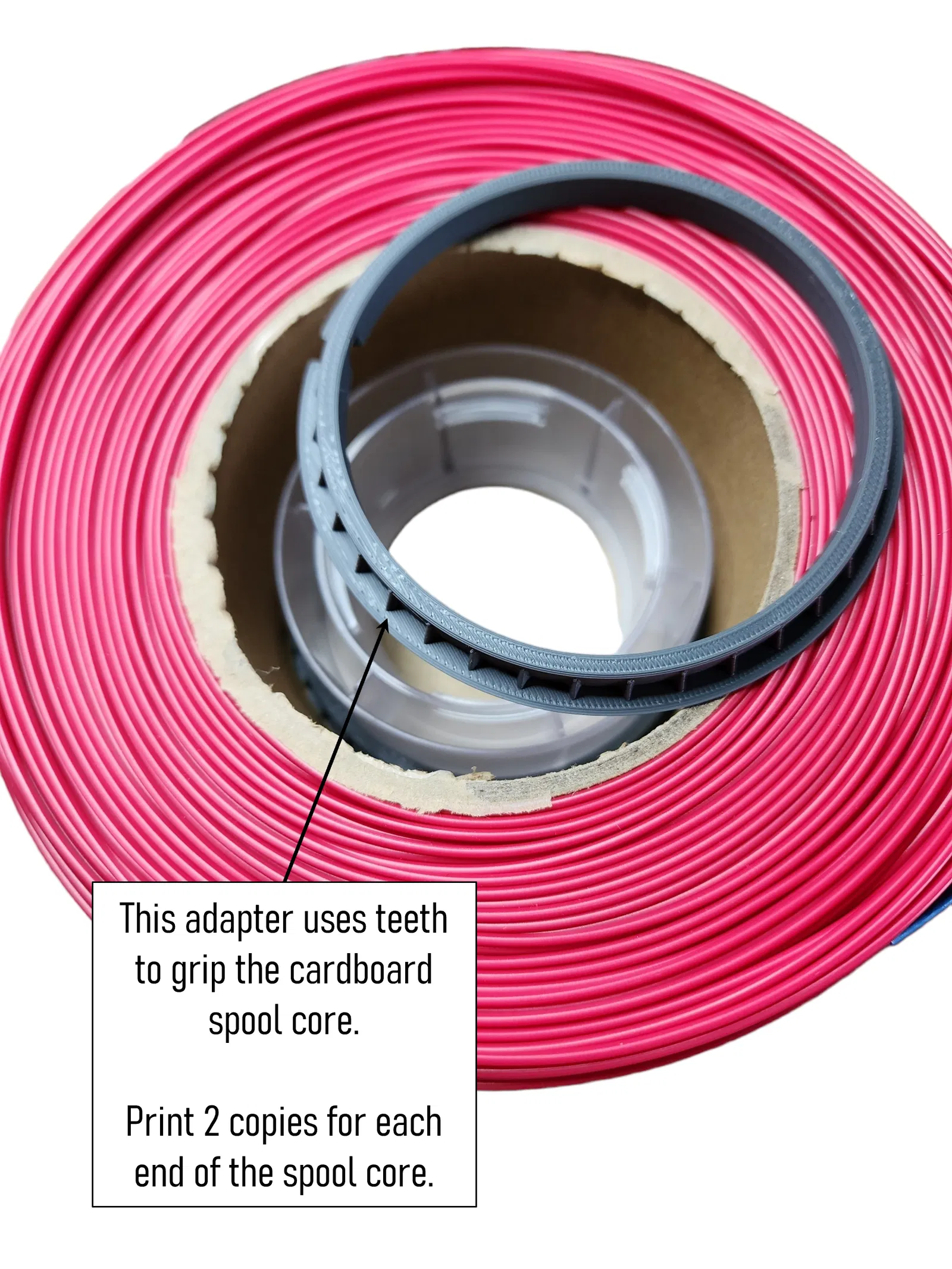 Thiết kế có các “răng nhỏ” để bám vào lõi bìa cứng. Có sẵn STL cho Overture và Inland, nhưng bạn có thể chỉnh các tham số để hợp với hãng filament của bạn.