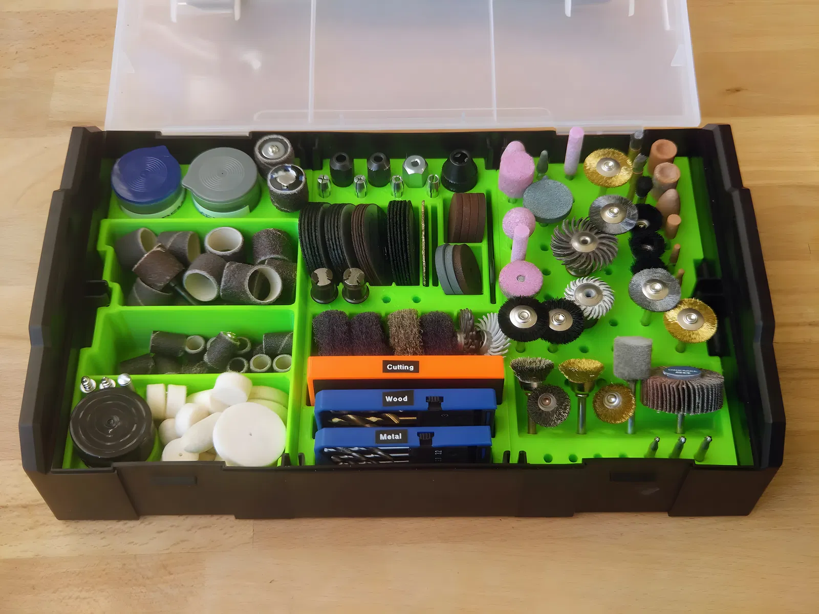 Đây là một khay insert cho L-Boxx Mini để sắp xếp các mũi Dremel của bạn dựa trên model L-Boxx Inner Volume.