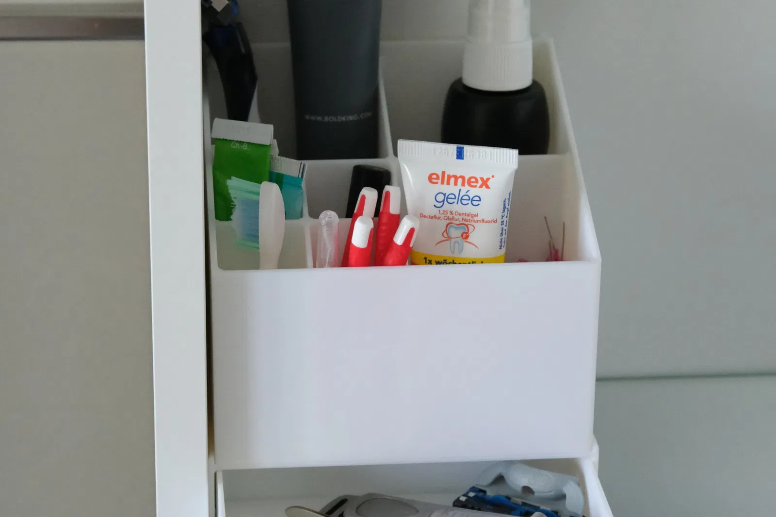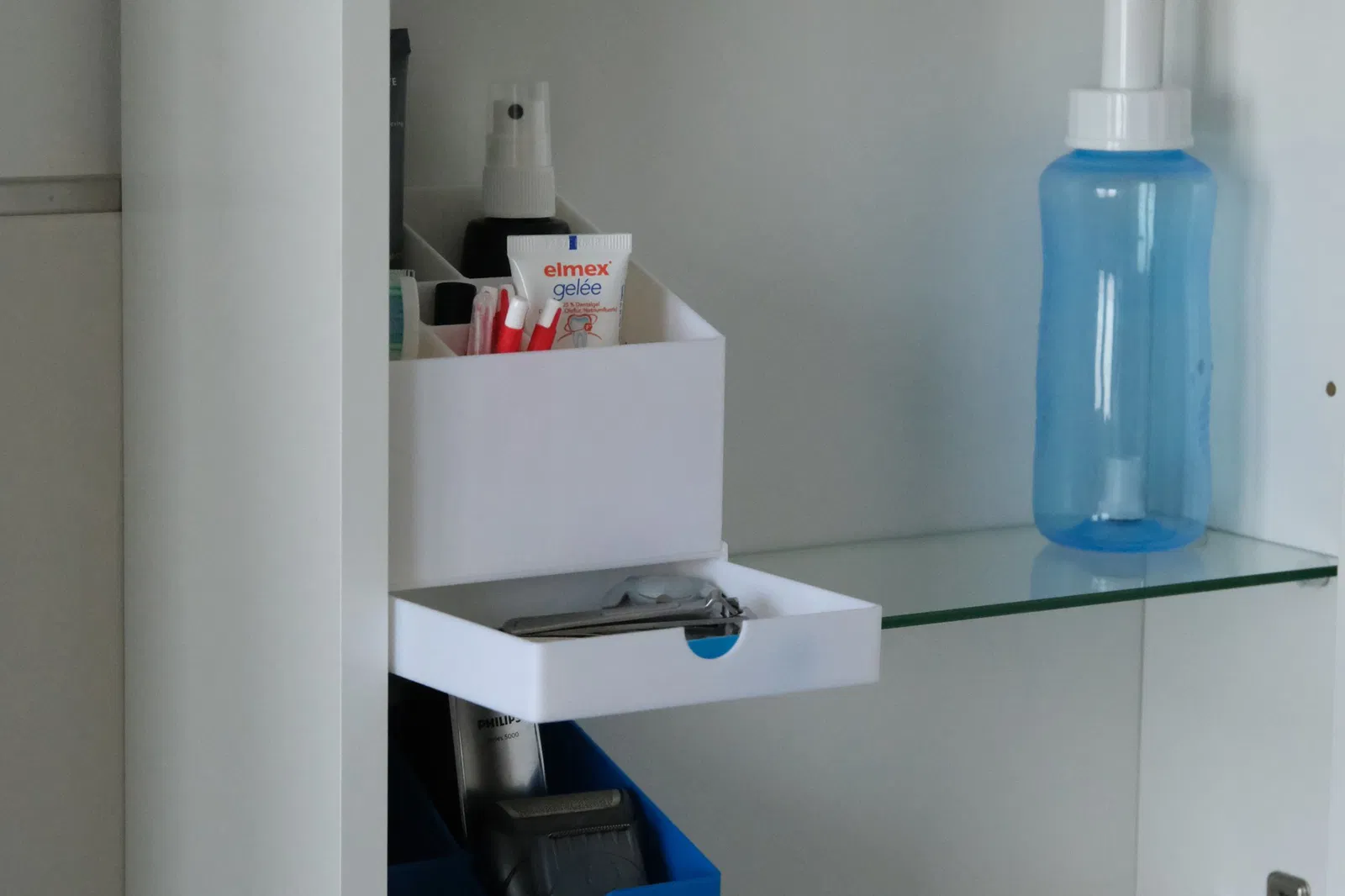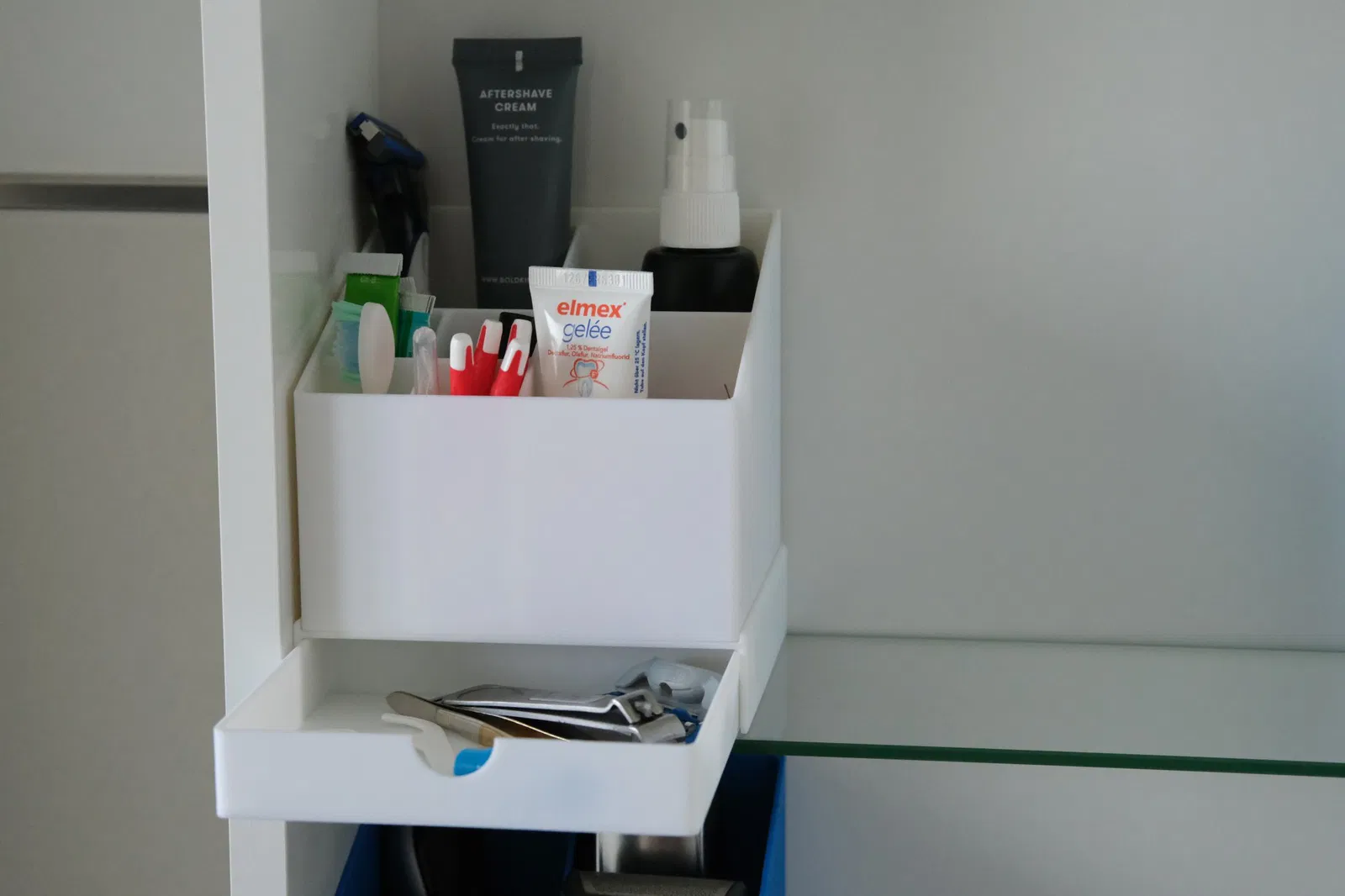 Để lưu trữ và tổ chức các bộ phận nhỏ hơn trong tủ gương phòng tắm