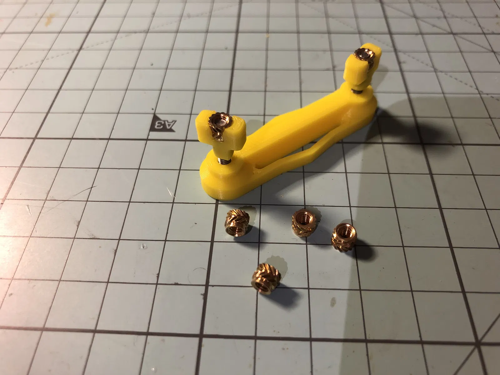 Mình dùng threaded insert đường kính 5mm, và nó lọt vừa khít qua các khe (slot) của Skadis.