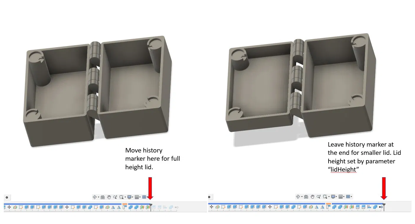- Có thể tạo cả 2 phiên bản nắp thấp và nắp full height chỉ bằng cách di chuyển history marker.