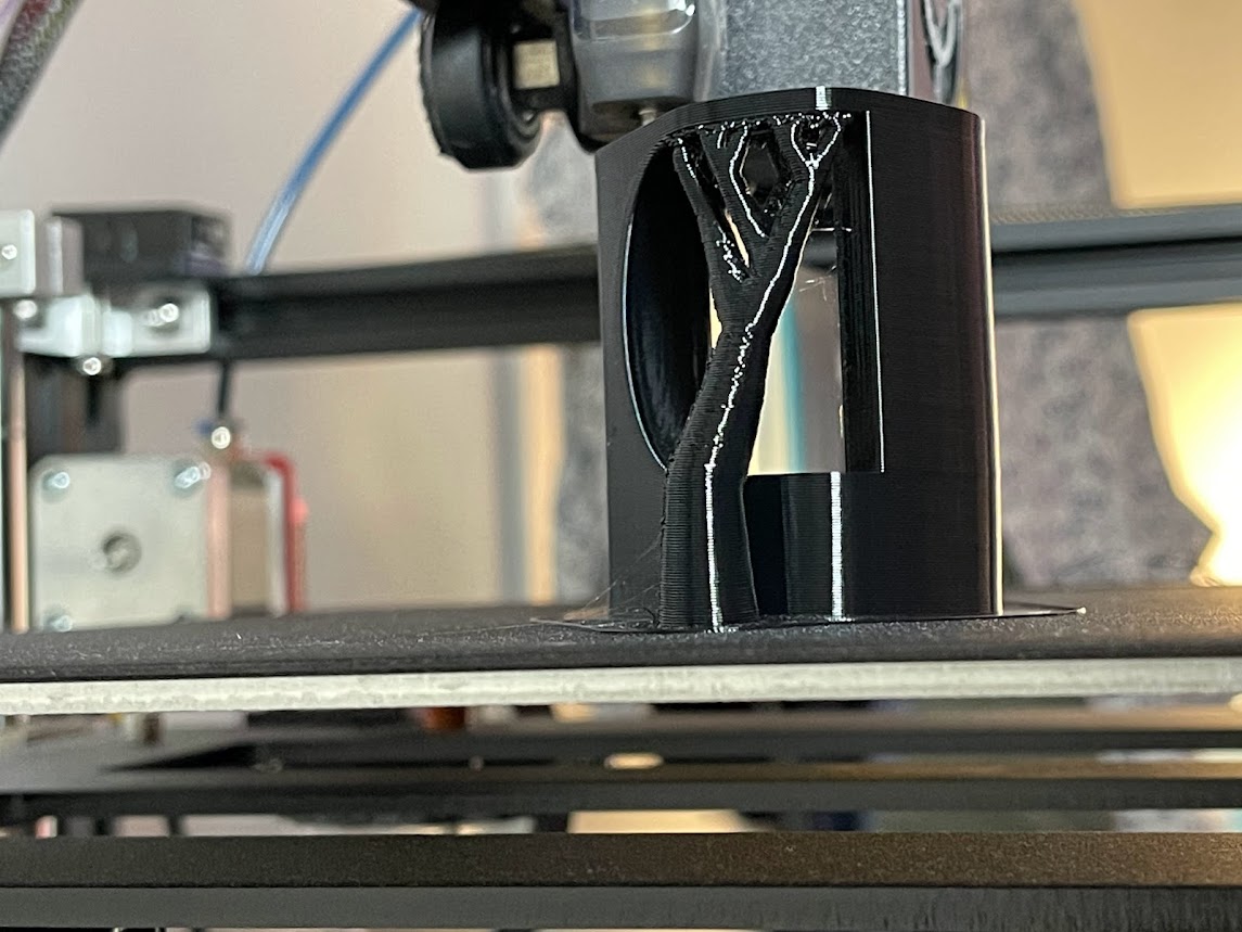 Tôi đã in phần trên của mô hình bằng PETG, nhưng vẫn đang sử dụng phần dưới của giá đỡ được in bằng PLA. Có thể in toàn bộ bộ chuyển đổi bằng PLA hoặc PLA+, nhưng bản thân tôi chưa thử.
