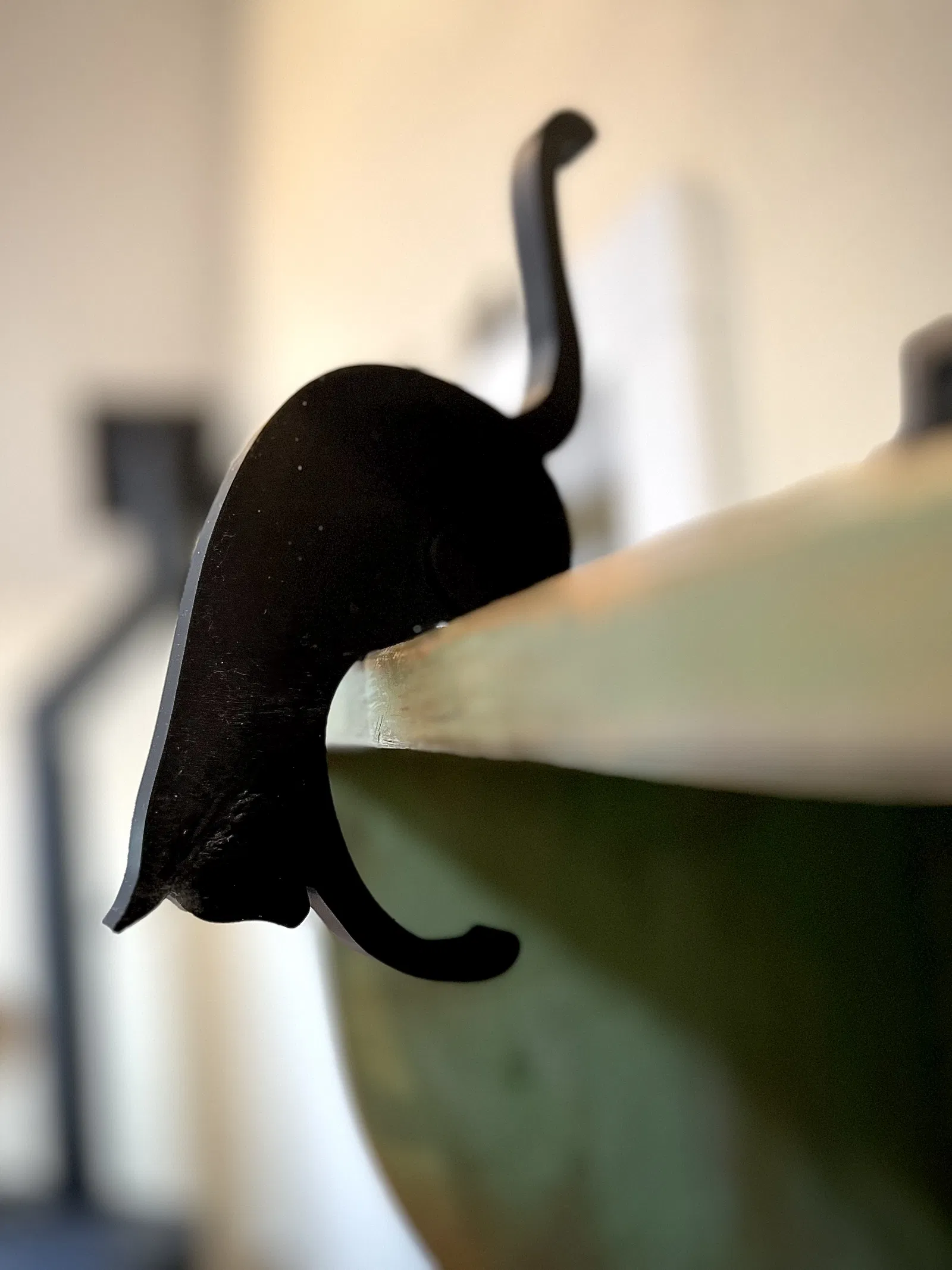 Mẫu silhouette mèo đặt lên kệ và tự cân bằng, có chân dưới để treo đồ. Dễ in, không cần support. Nếu treo vật nặng, nên tăng infill, wall/surface count và bật surface ironing để bề mặt đẹp hơn.