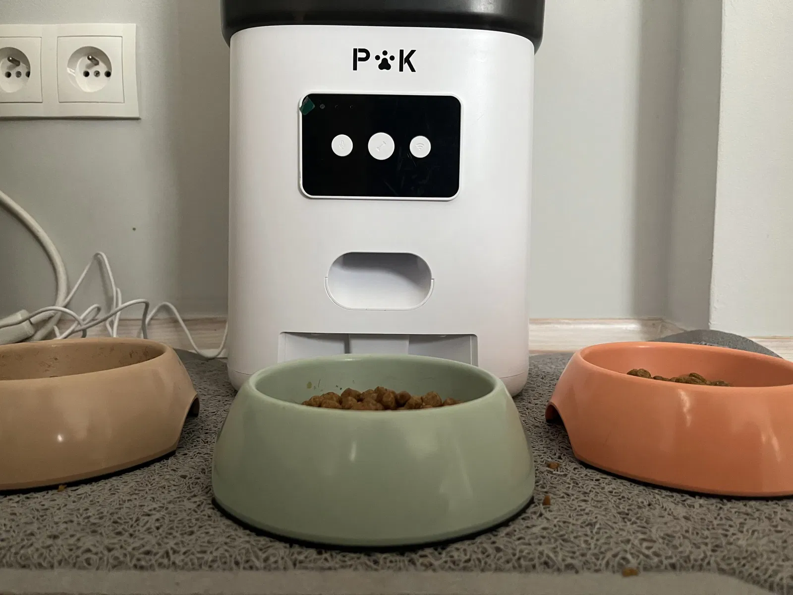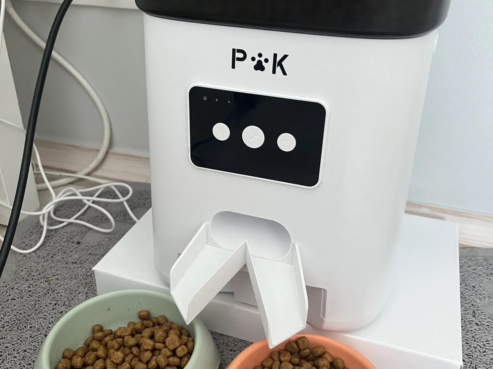 Đây là một bộ chia thức ăn tự động cho hai con mèo mà bạn có thể gắn bằng băng dính hai mặt, in thành hai mảnh.