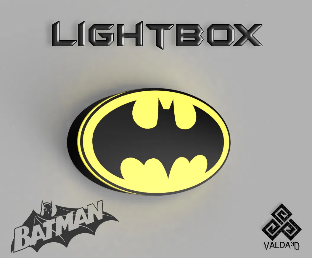 Mẫu 3D multicolor Batman Logo Lightbox – Led Lamp. File được đặt theo tên màu, import vào Bambulab/Orca dạng single object nhiều parts, có lỗ 4.5mm cho dây ledstrip. In PEI Textured plate, trắng in sau cùng để viền sáng đẹp.