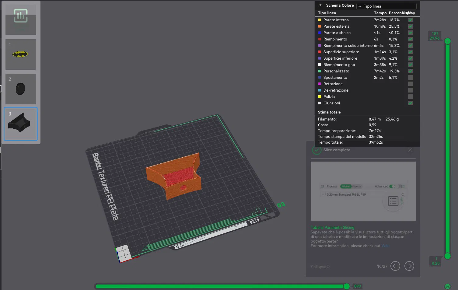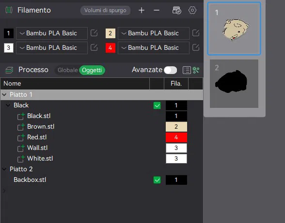 • Import chúng vào Bambulab/Orca dưới dạng single object với multiple parts.