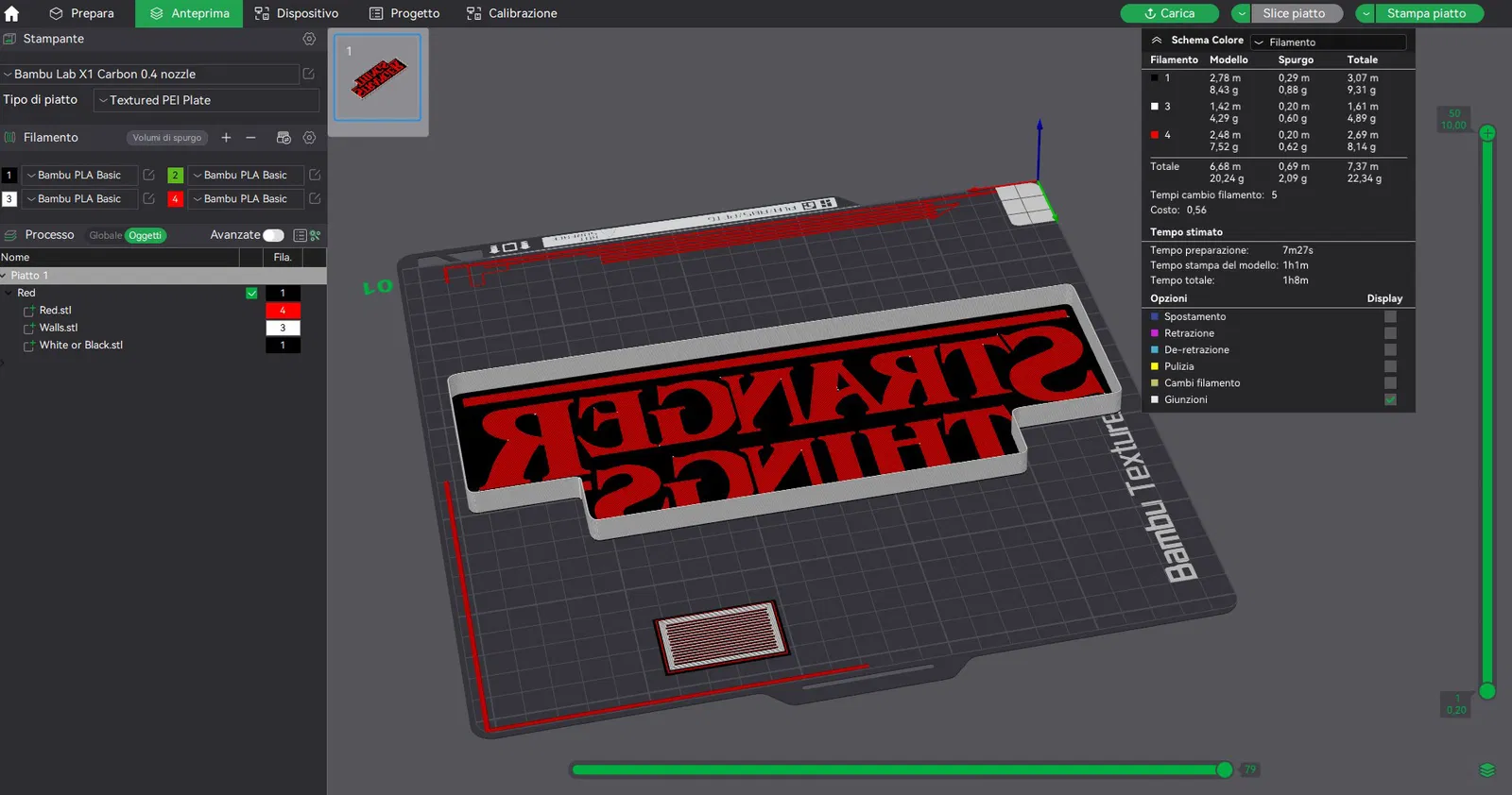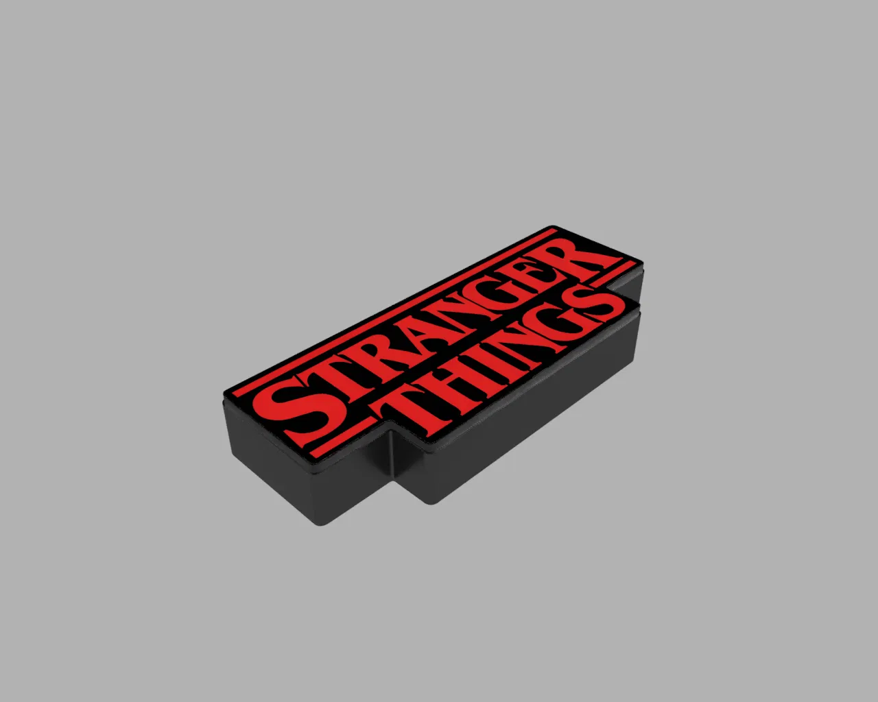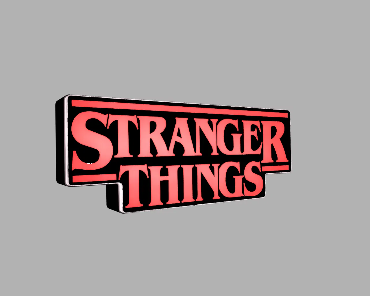 Mẫu 3D lightbox logo Stranger Things để in nhiều phần theo màu, dễ setup trong Bambulab/Orca. Backbox có lỗ 4.5mm để luồn dây ledstrip; in xong dán dải LED vào trong là có đèn lightbox hoàn chỉnh.