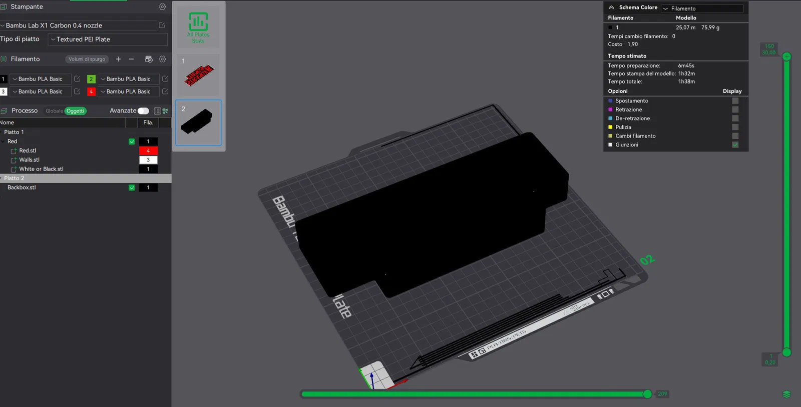 - Import vào Bambulab/Orca dưới dạng single object with multiple parts.