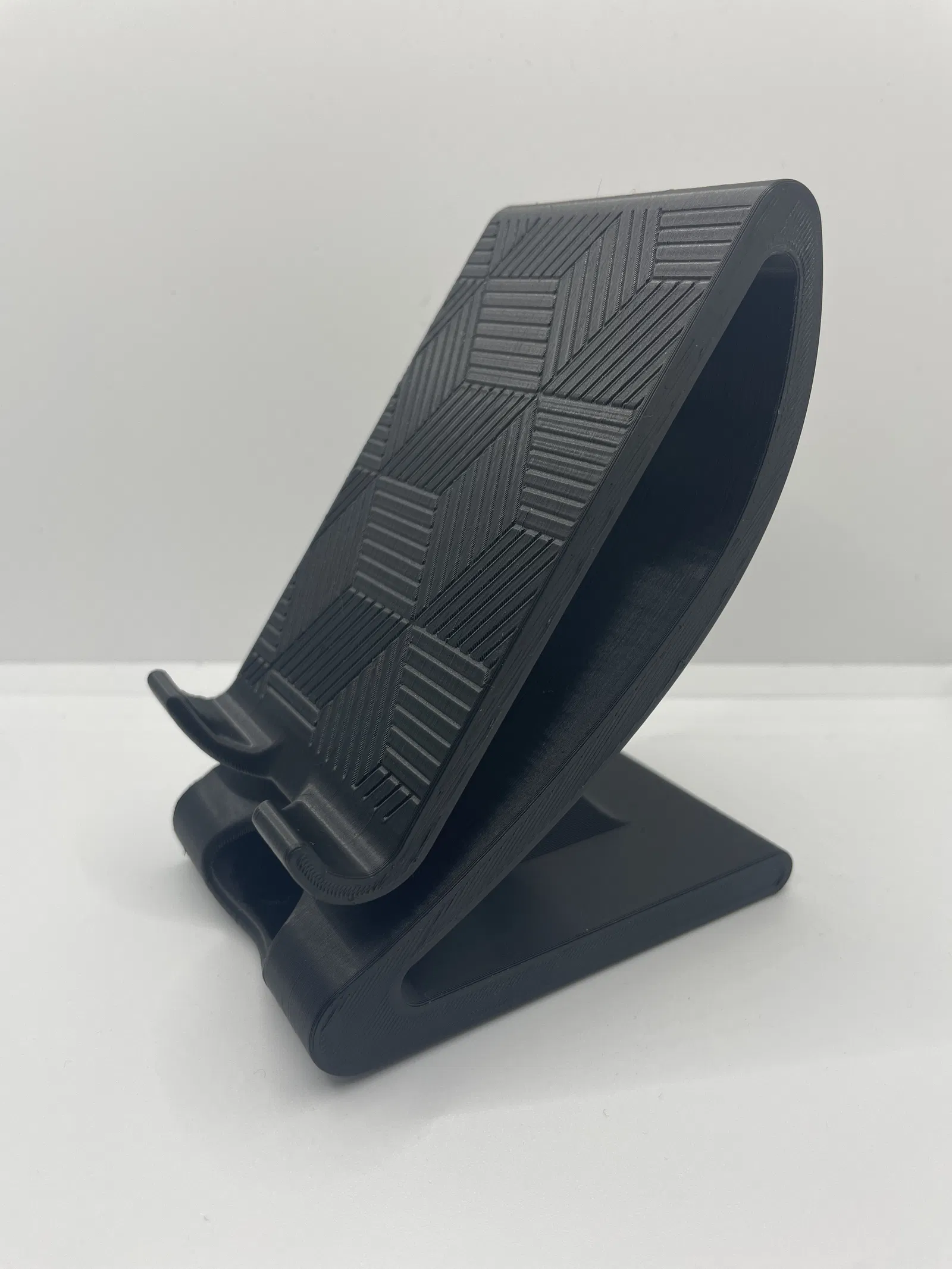 Điểm cộng lớn nhất của chiếc giá đỡ này là khả năng in 3D mà không cần sử dụng vật liệu hỗ trợ (supports). Điều này không chỉ giúp tiết kiệm vật liệu in mà còn giảm thiểu thời gian xử lý sau in, mang lại thành phẩm hoàn chỉnh nhanh chóng và dễ dàng hơn. Họa tiết vuông tinh xảo trên bề mặt tạo nên điểm nhấn, giúp chiếc giá đỡ trông sang trọng và bớt nhàm chán hơn so với các thiết kế thông thường.