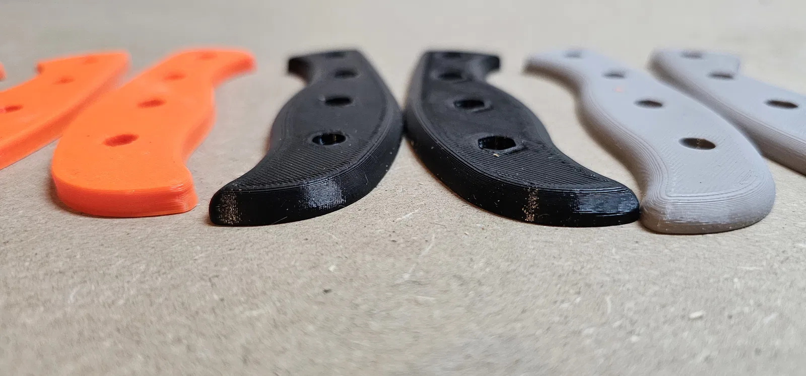 Mình in các mẫu dạng phẳng theo kiểu úp mặt xuống để lấy được bề mặt texture của bàn in hiện rõ trên sản phẩm. Tuy nhiên, cách này sẽ cần thêm một ít support cho các lỗ vít và lỗ đai ốc.