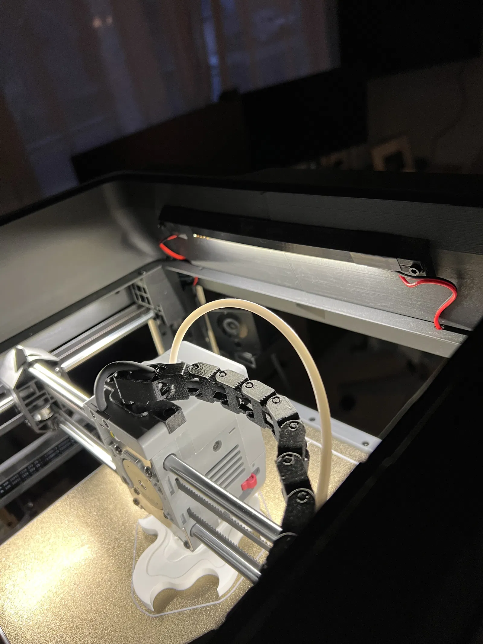 Loại đèn mình dùng là COB 8mm LED strips tự dán. Mình hàn dây LED strip vào đầu nối XH 2.54mm 2pin male để cắm trực tiếp vào board ở phía sau máy in.