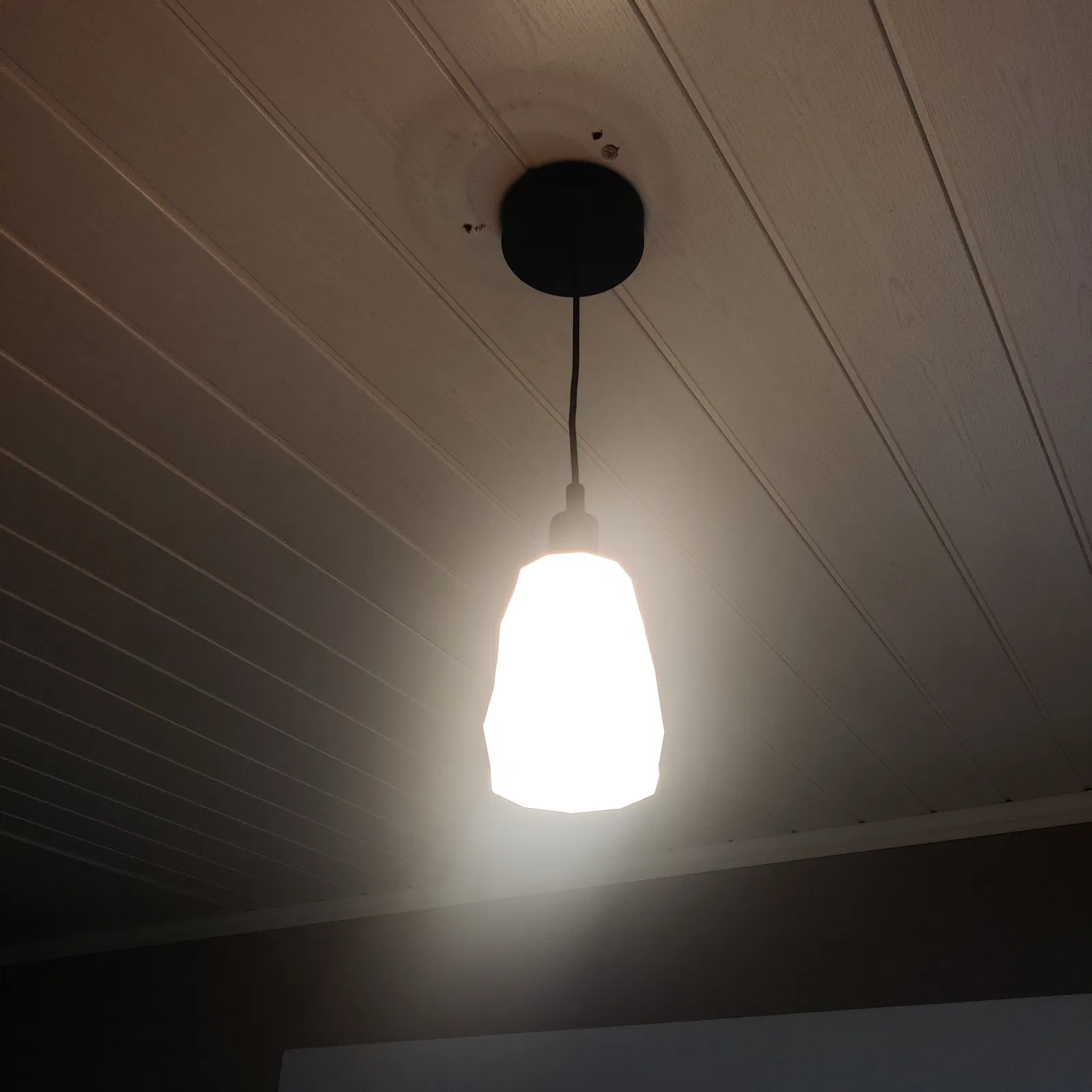 Mẫu chụp đèn trần dùng đui E27, in vase mode để thành mỏng và nhẹ. Nên in PLA màu sáng (beige/trắng) để tán ánh sáng tốt hơn. Có ring và ceiling mount, chừa chỗ đi dây/connector, bắt ốc nhỏ hoặc dán keo khi cần.