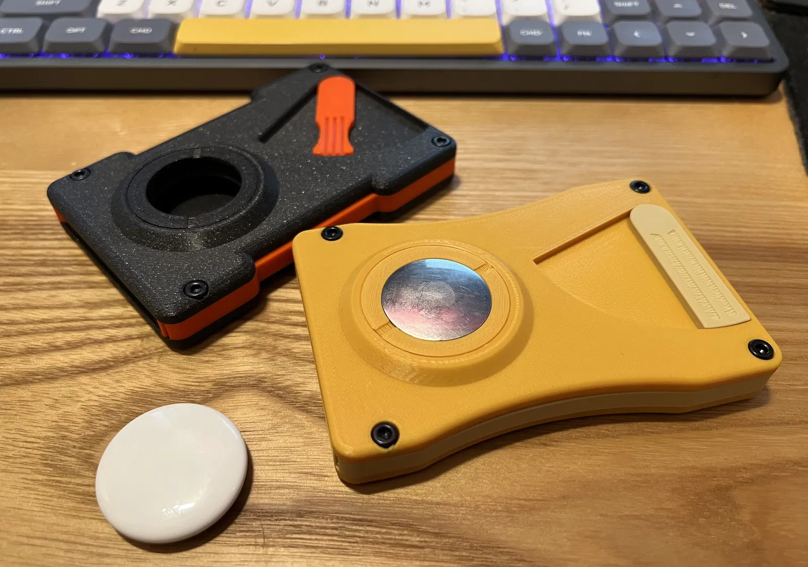 Bản Modular Wallet: Slimfast Edition thêm chỗ gắn Apple AirTag và ngăn tiền mặt nhưng gần như không làm ví dày lên (AirTag +4mm, tiền mặt không tăng). Có 3 phiên bản: Curved, Modular và Popup.