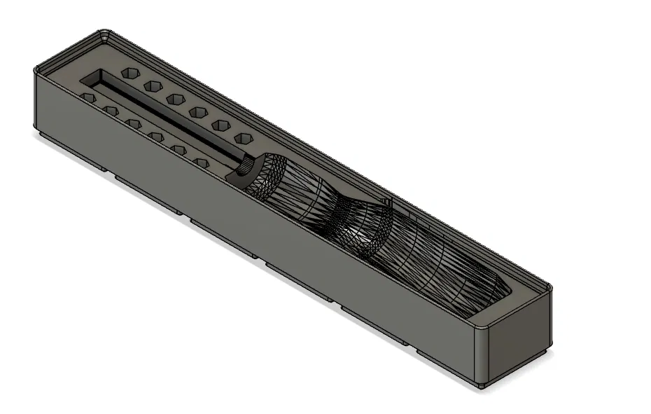 Chiếc khay này không chỉ đơn thuần là một nơi để cất giữ tua vít. Nó được thiết kế thông minh với các rãnh vừa vặn, giữ cho cây tua vít LTT của bạn không bị xê dịch, tránh trầy xước hay hư hỏng. Hình dáng đặc biệt của phần lõm bên trong khay, vốn là điểm nhấn độc đáo từ bản thiết kế của Insaniaxs, nay được giữ nguyên và tích hợp vào chuẩn Gridfinity. Điều này đảm bảo tua vít của bạn được ôm trọn, cố định chắc chắn ngay cả khi di chuyển khay.