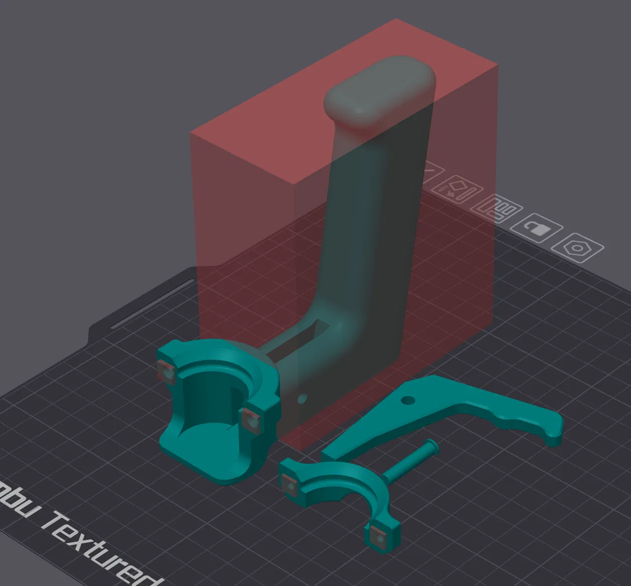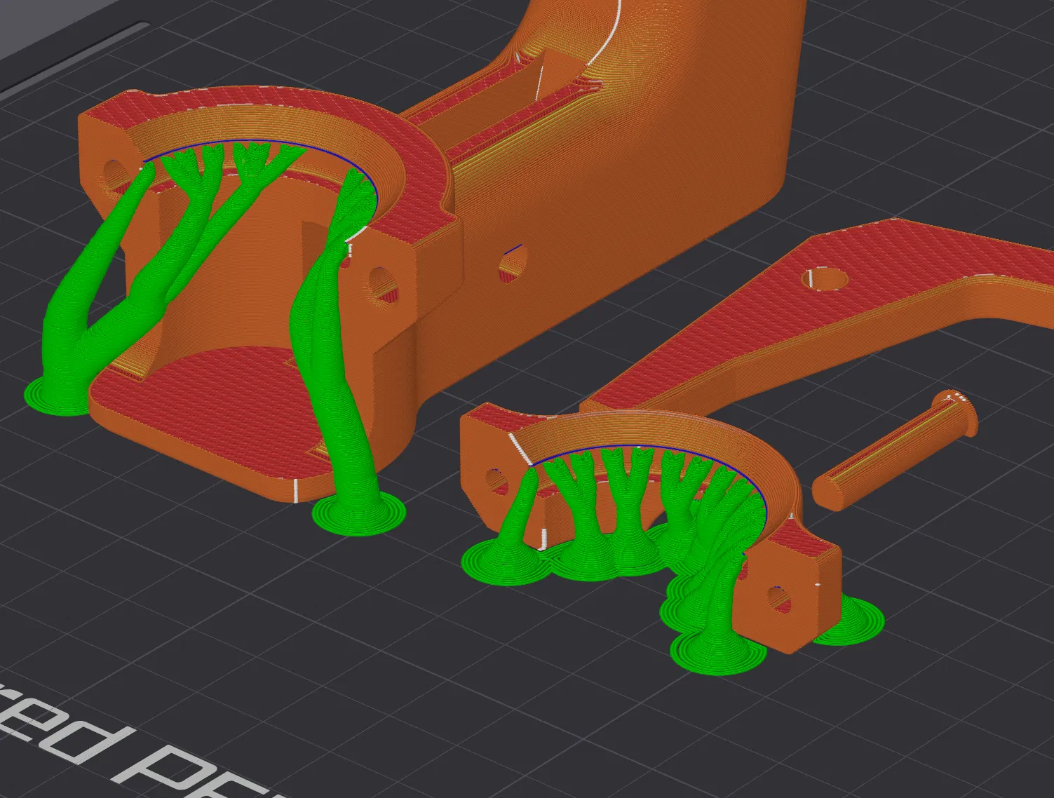 Rất khuyến nghị dùng supports khi in phần clamp và các bề mặt tay cầm gắn lên vành lon sơn. Những vùng khác có thể chặn supports bằng support blocker.