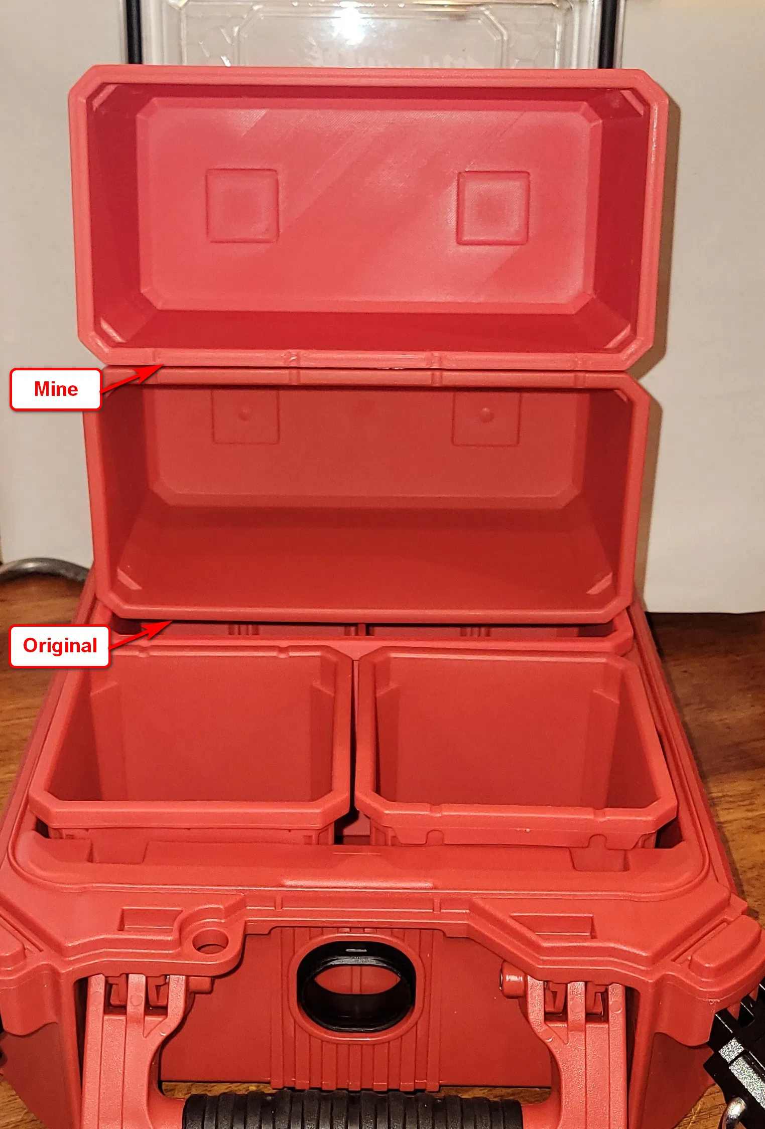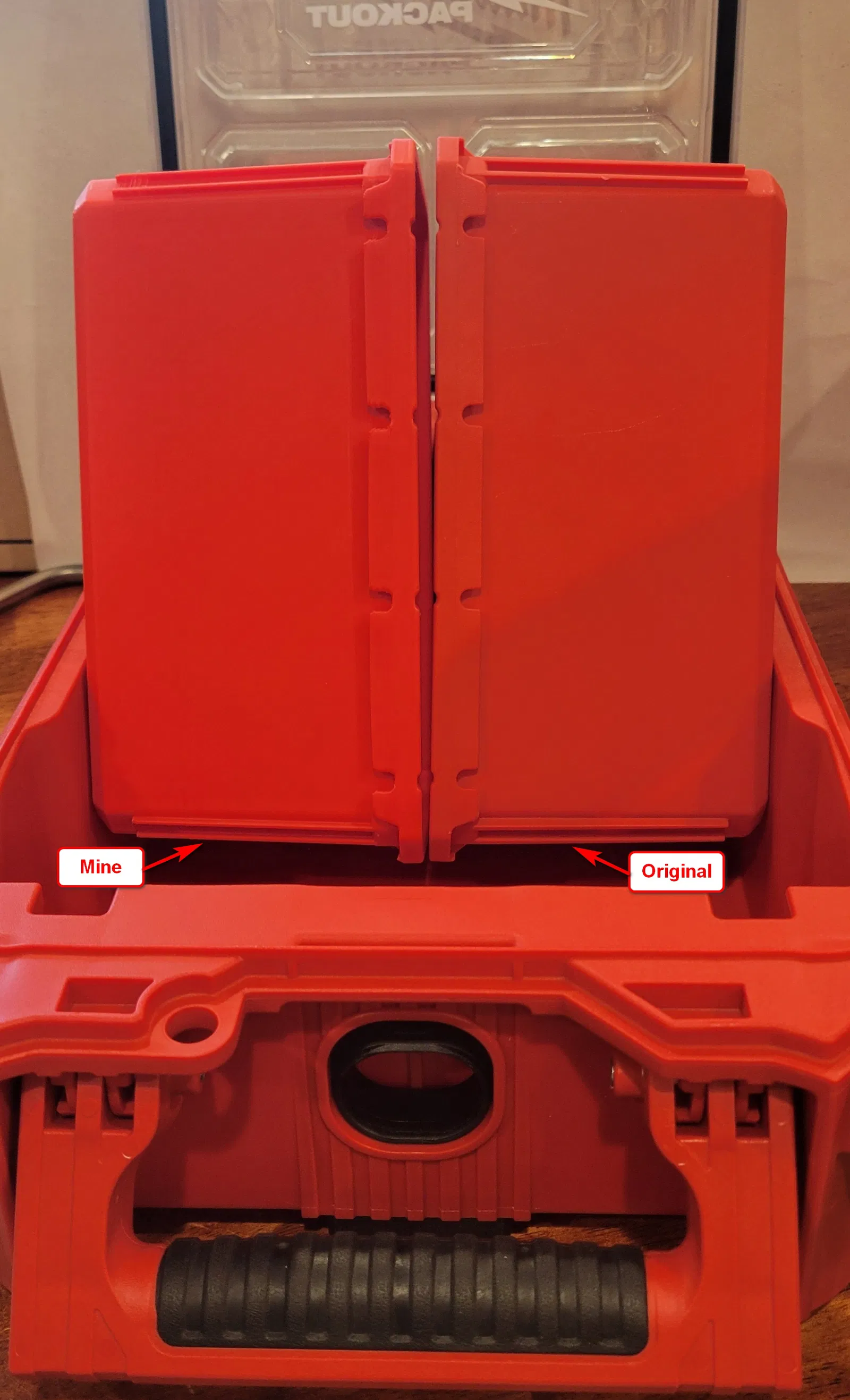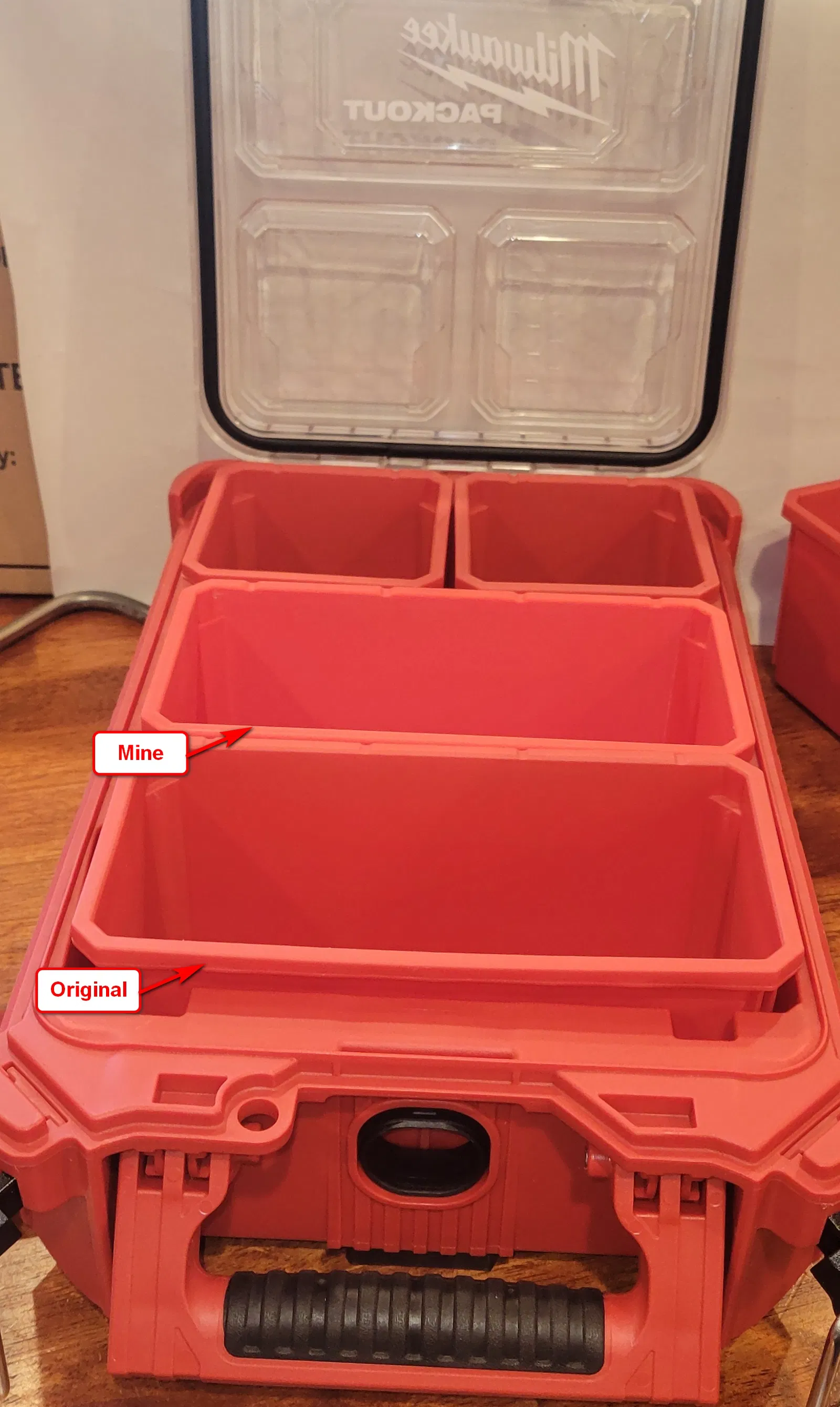 Vậy nên trước tiên mình nhân bản khay vuông Milwaukee Packout Organizer. Sau đó thì bận công việc nên chưa có dịp làm khay chữ nhật — tới giờ mới làm xong.