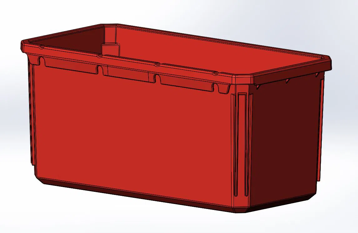 Mẫu khay (bin) hình chữ nhật tương thích Milwaukee Packout Organizer, chức năng tương đương khay zin. Đã in thử PLA và PETG: PLA cứng, dễ gỡ organic supports; PETG dẻo hơn, chịu rơi tốt nhưng supports bám hơn.