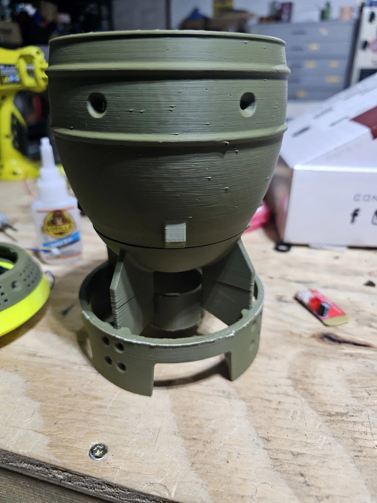 - Dán nắp vàng vào thân. Khuyên chỉ chấm keo vài điểm thôi, lỡ sau này cần tháo ra còn gỡ được.