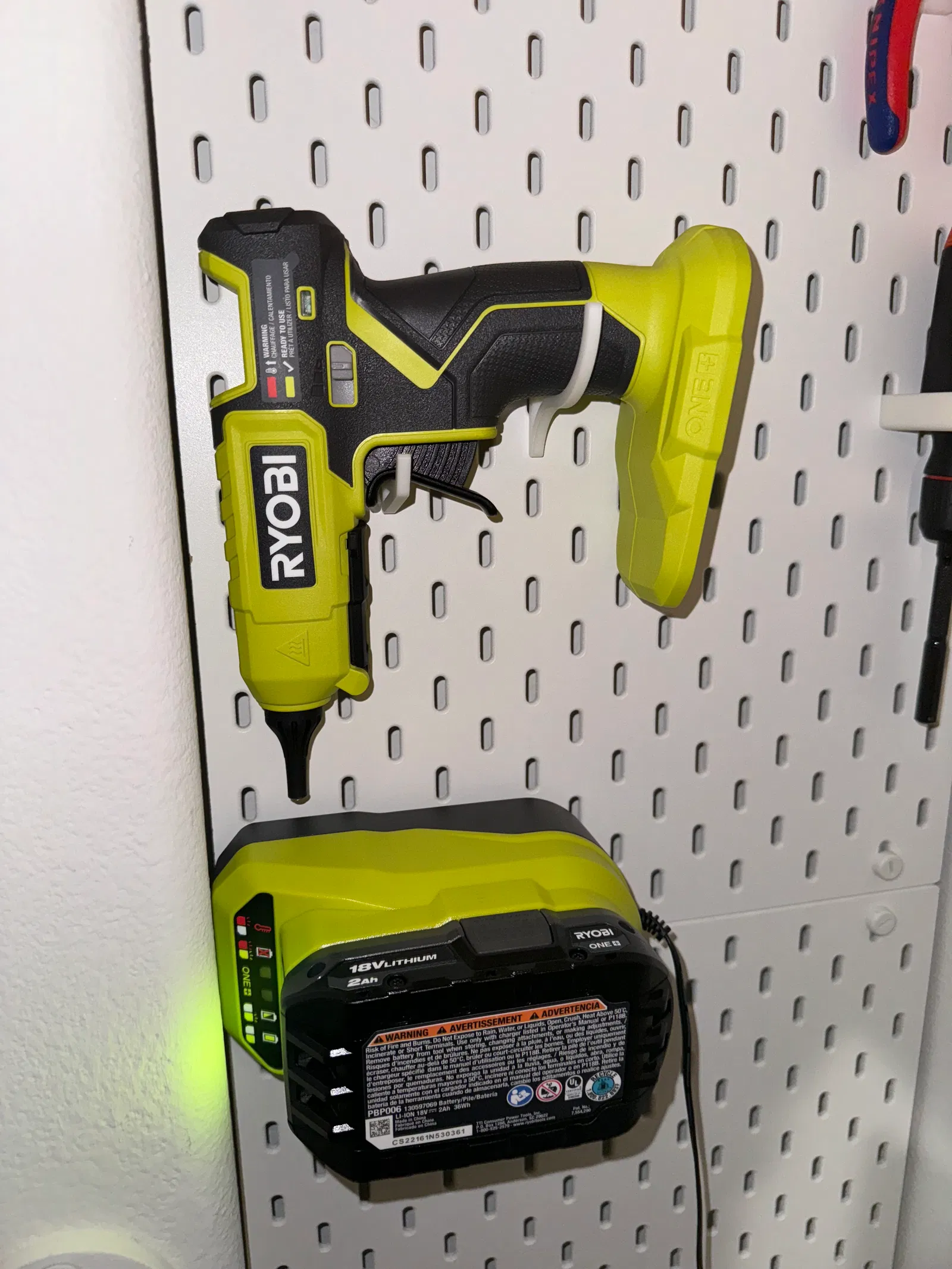 Mình remix lại cái ngàm gắn sạc pin Ryobi lên pegboard để dùng tương thích với IKEA Skadis.
