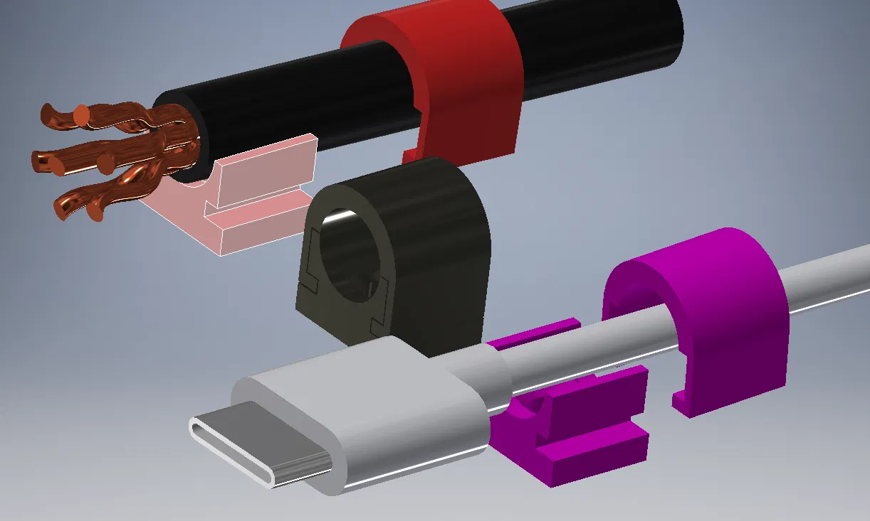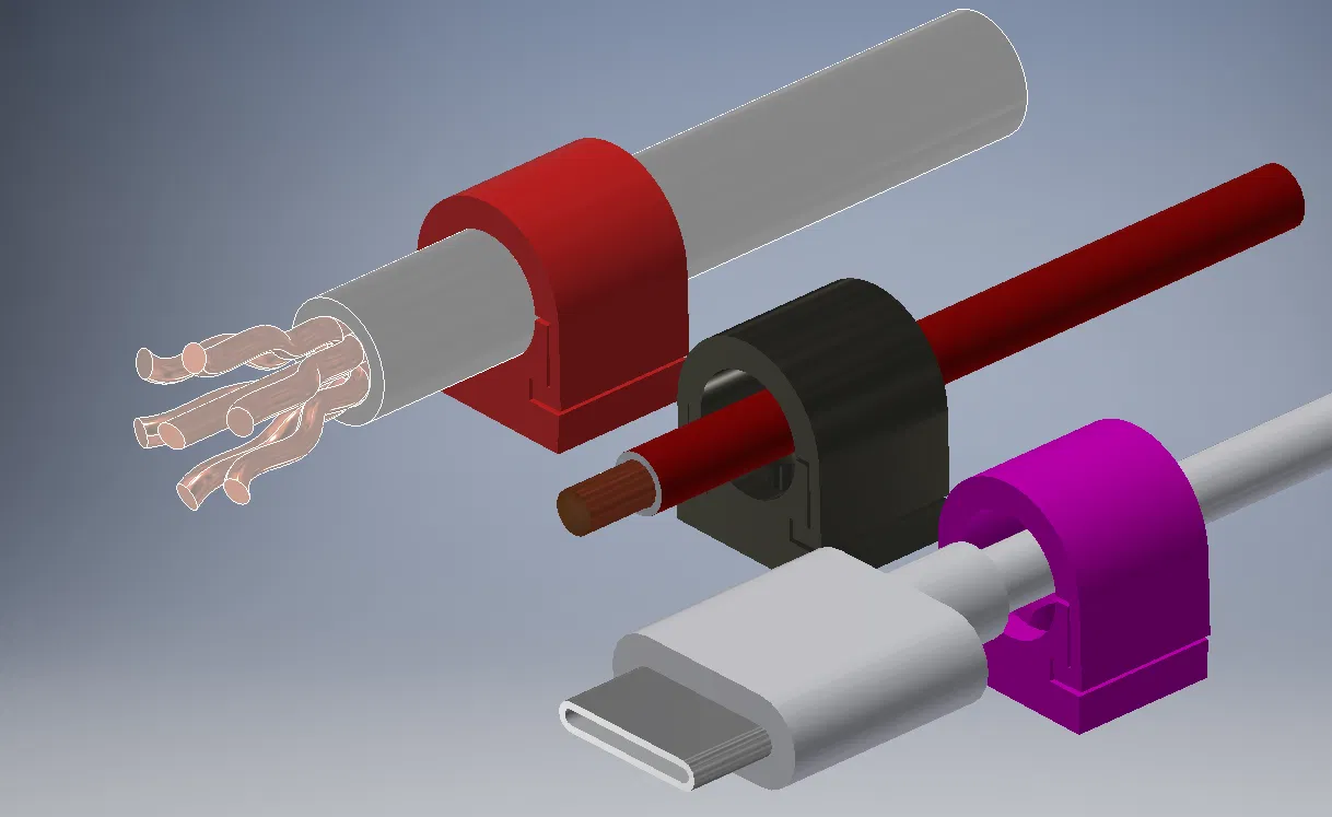 Kẹp giữ dây cáp nhỏ. Thiết kế đơn giản nhưng rất hữu dụng. Nó có thể giữ dây cáp đường kính tới 8mm. Nếu cần thì bạn cứ scale lên/xuống cho phù hợp.
