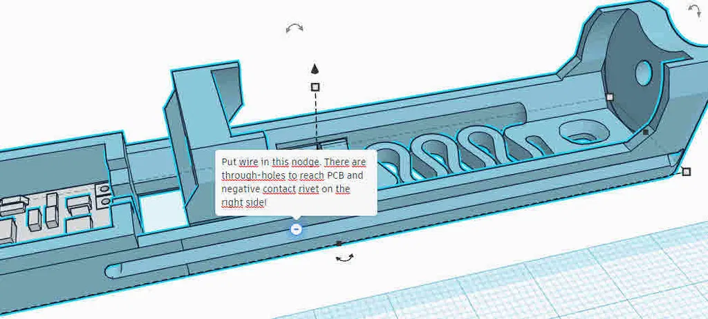 Gắn PCB vào holder, đảm bảo hai tab nhỏ chui đúng vào các lỗ hướng về phía pin, và cổng USB khớp vào rãnh ở phía còn lại. (xem ảnh chụp Tinkercad đính kèm)