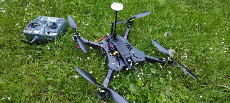 Mình dùng bộ chân (legs) đi kèm X525, cắt ngắn lại và khoan rất nhiều lỗ. Sau đó mình thiết kế phần khung drone gập xoay quanh bộ chân đó, DJI Naza V2, PMU, LED, pin Turnigy 4500, receiver Turnigy 9X. Mình dùng motor Multistar 2213-925 với cánh 1045 và ESC của Turnigy. Mình dùng một bộ gá antenna dạng gập cho receiver và GPS. Thiết kế có tích hợp sẵn ngàm gắn GoPro / Dji Osmo Action, nhưng do lỗi thiết kế ở phần mid và top nên không dùng được. Mình nối USB ra LED vì LED nằm ở mặt dưới của phần TOP, và có khoét lỗ trên top để nhìn thấy LED. Dây cáp chỉ được cố định ở bên hông bằng vài sợi dây đai.