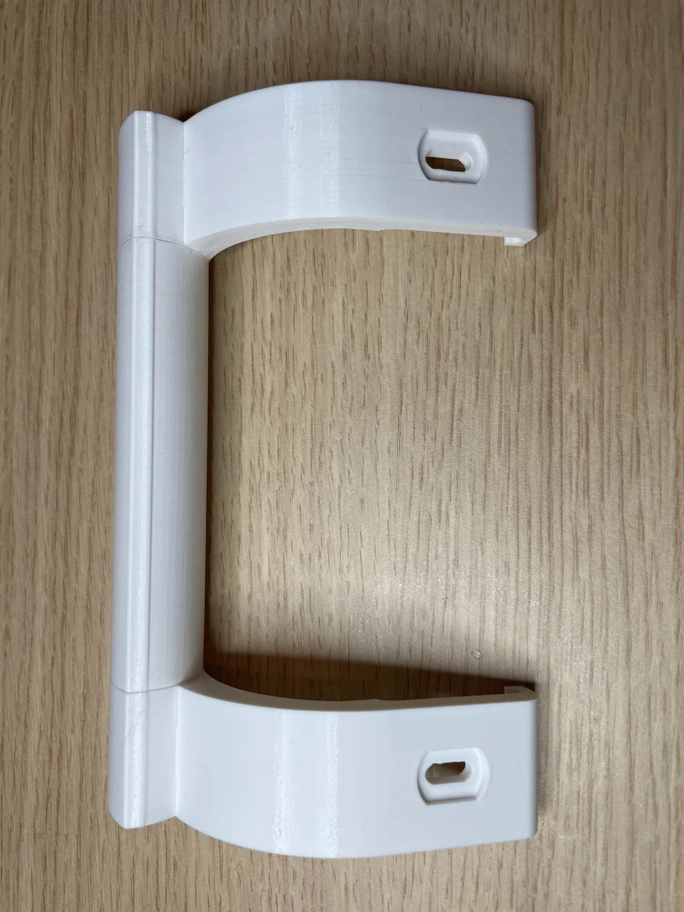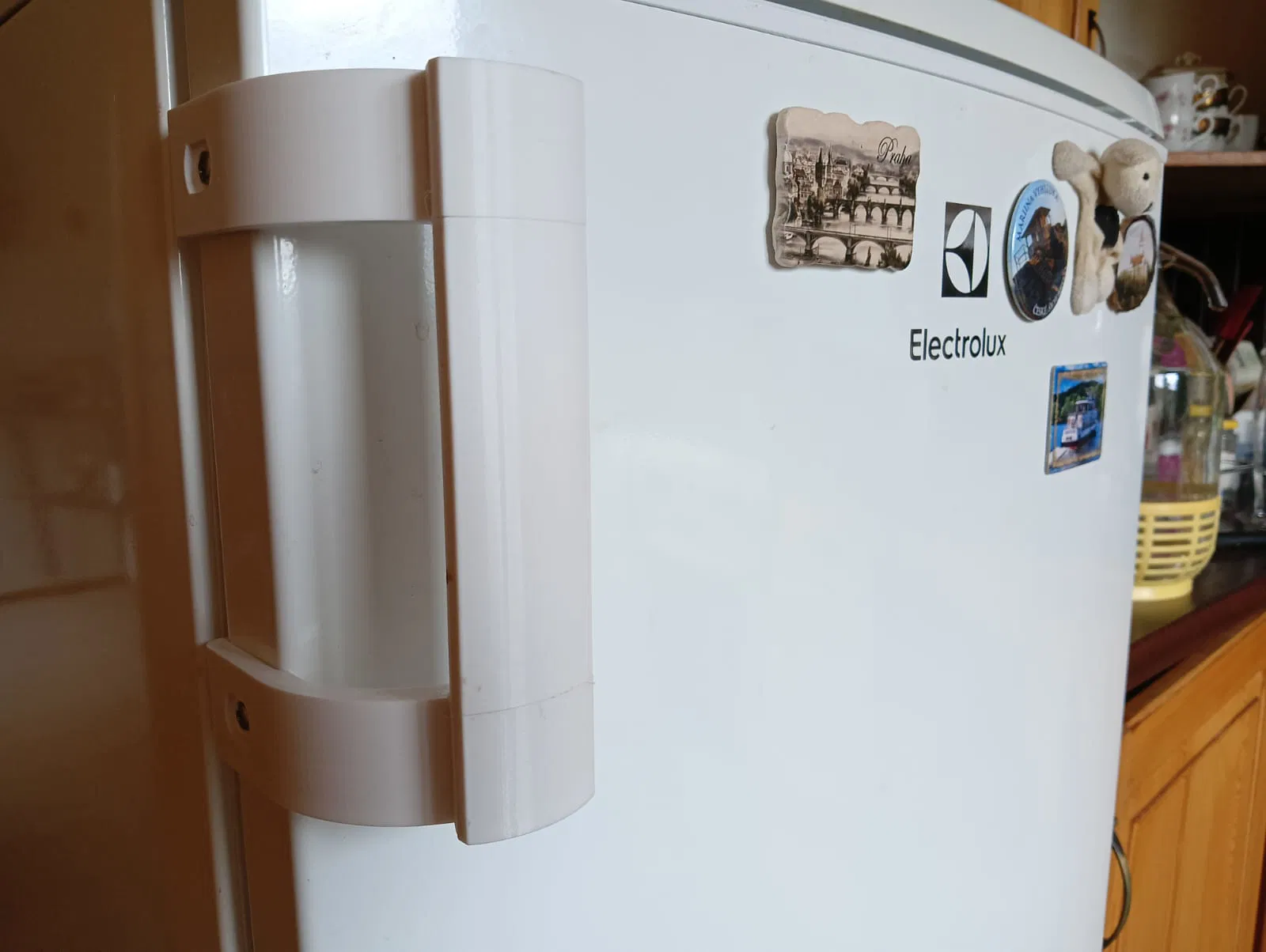 Tay nắm thay thế cho tủ lạnh Electrolux, đã rút ngắn để khoảng cách trong giữa hai ngàm/đế là 104 mm. Có gia cường khu vực bắt vít để bền hơn. Gợi ý in: PETG, 0.2 mm, 5 perimeters, 30% infill.