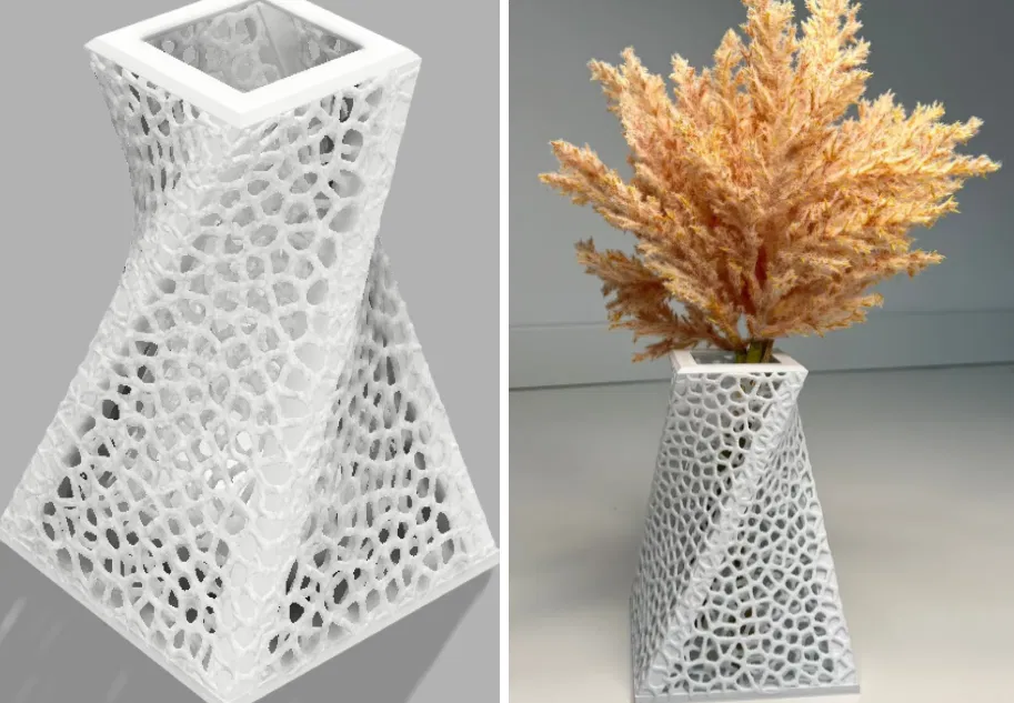 Mẫu bình hoa phong cách Voronoi dạng xoắn (Vase Voronoi Spiral), in đẹp và nhẹ. Khuyến nghị nozzle tối đa 0.5 mm, layer tối đa 0,2; có thể in không cần supports. Nên dùng PLA để giảm kéo sợi.