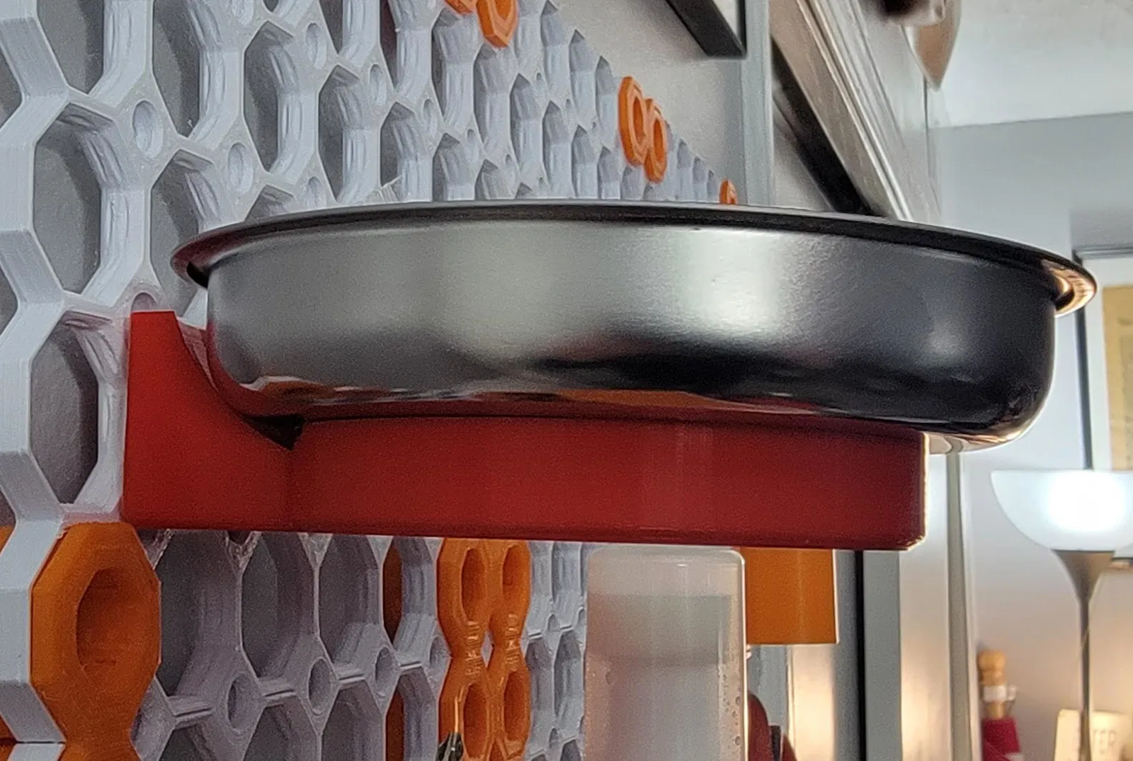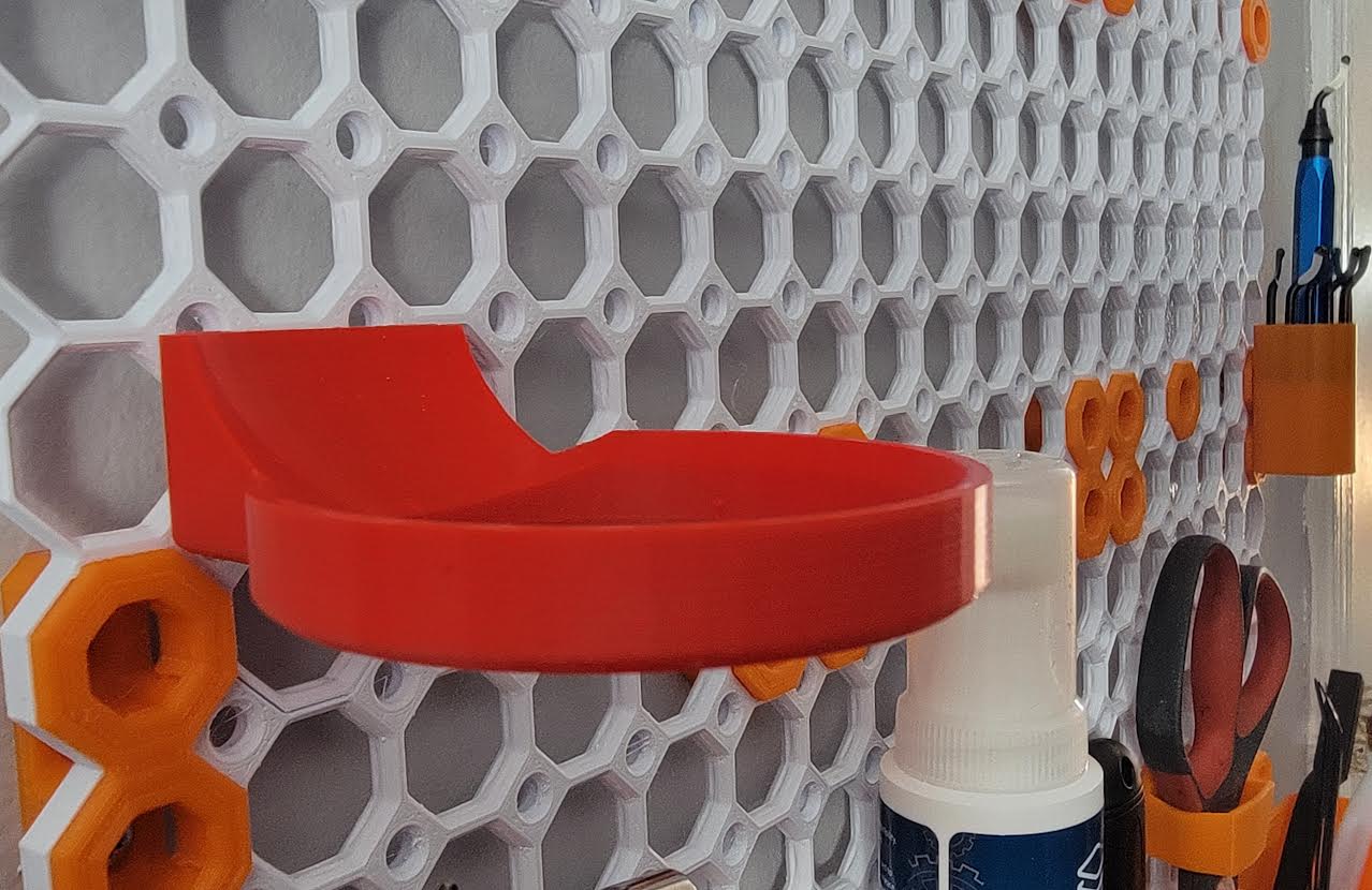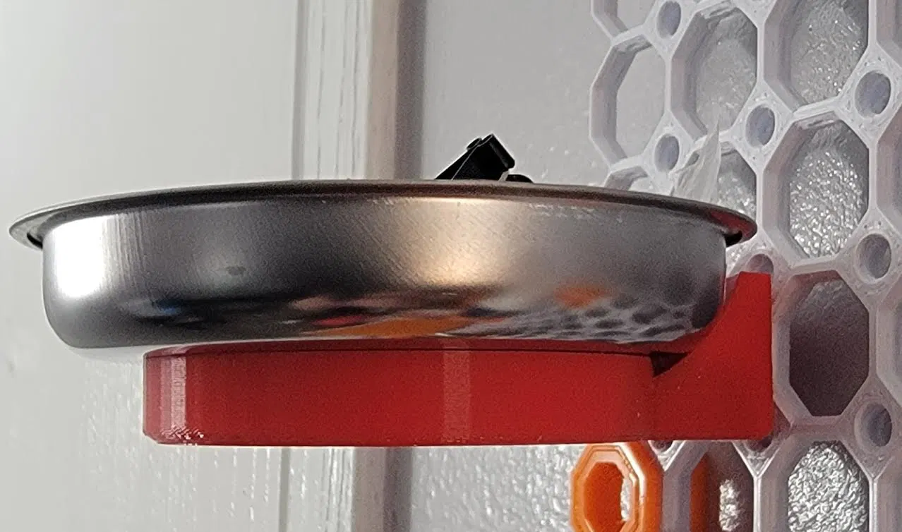 Phụ kiện dùng để gắn và giữ khay đựng linh kiện nam châm trên Multiboard. Hướng dẫn in PLA (15% infill), thường cần -0.15 Horizontal Expansion để vừa, có supports cho phần snap phía sau; đường kính trong ~67 mm.