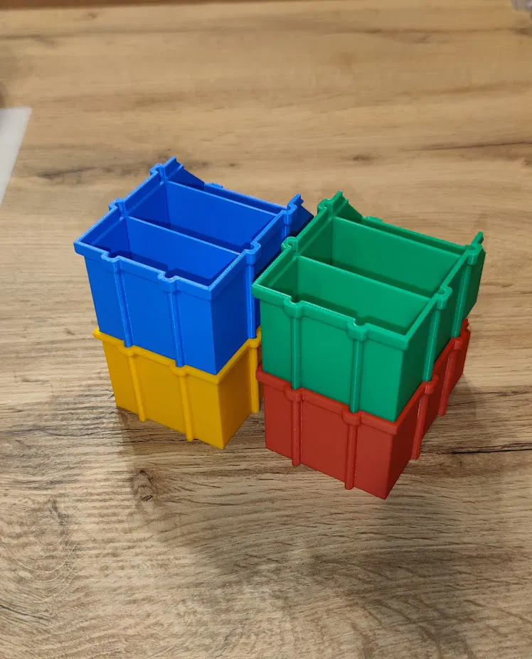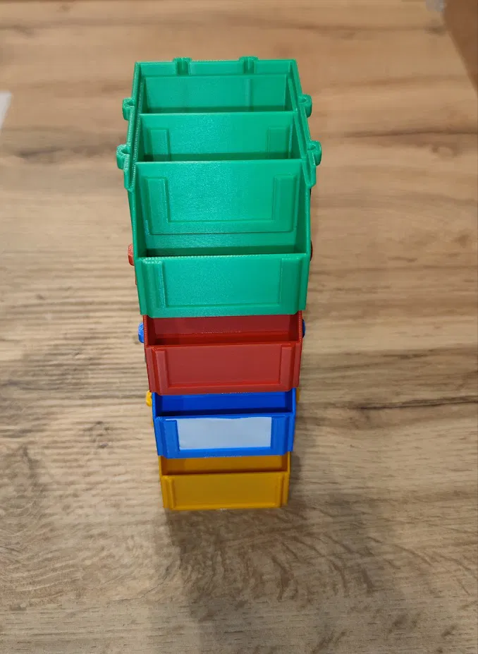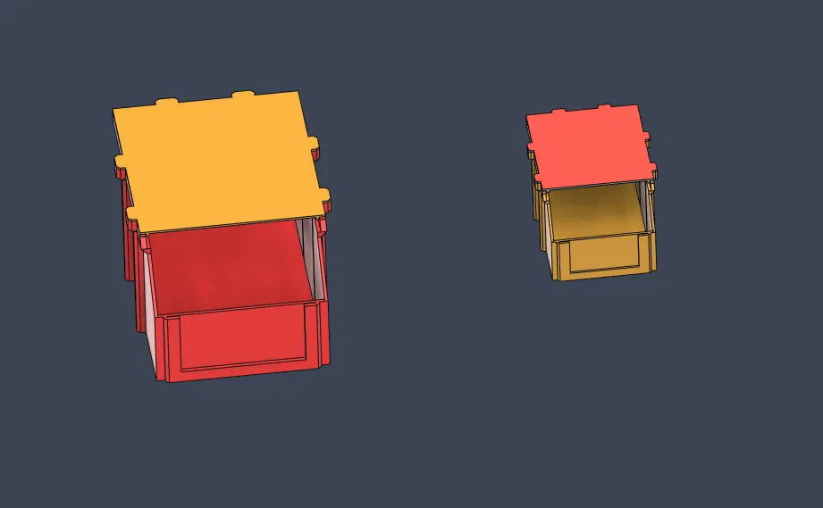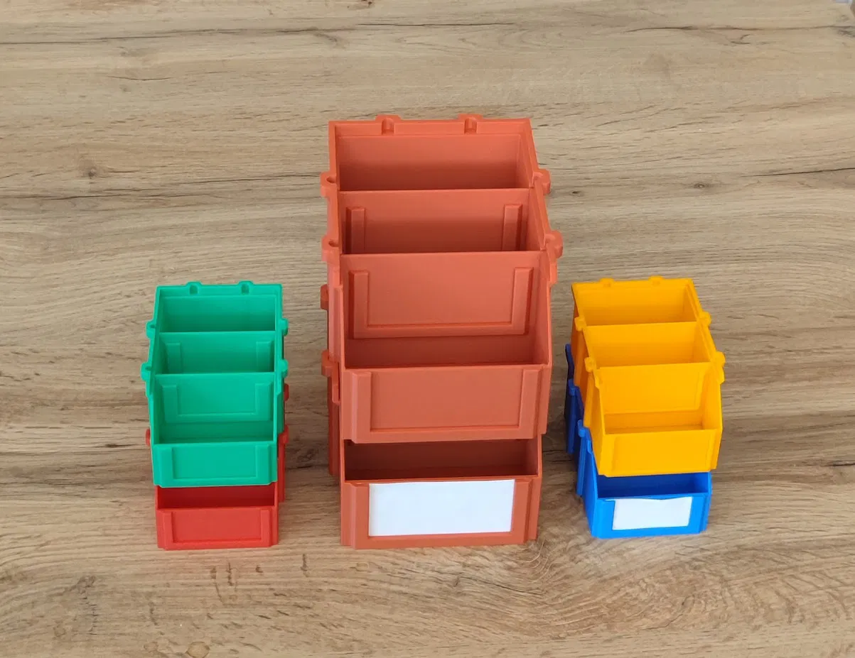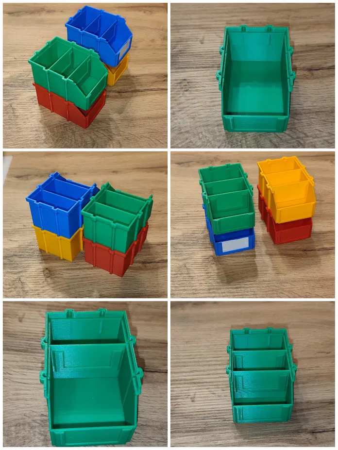Mẫu hộp lưu trữ stackable in cực đơn giản, không cần supports. Có 2 size 150x100 và 90x60, kèm vách ngăn trượt rời (file tách riêng) và mới thêm nắp đậy phía trên. Vách ngăn in cần brim.