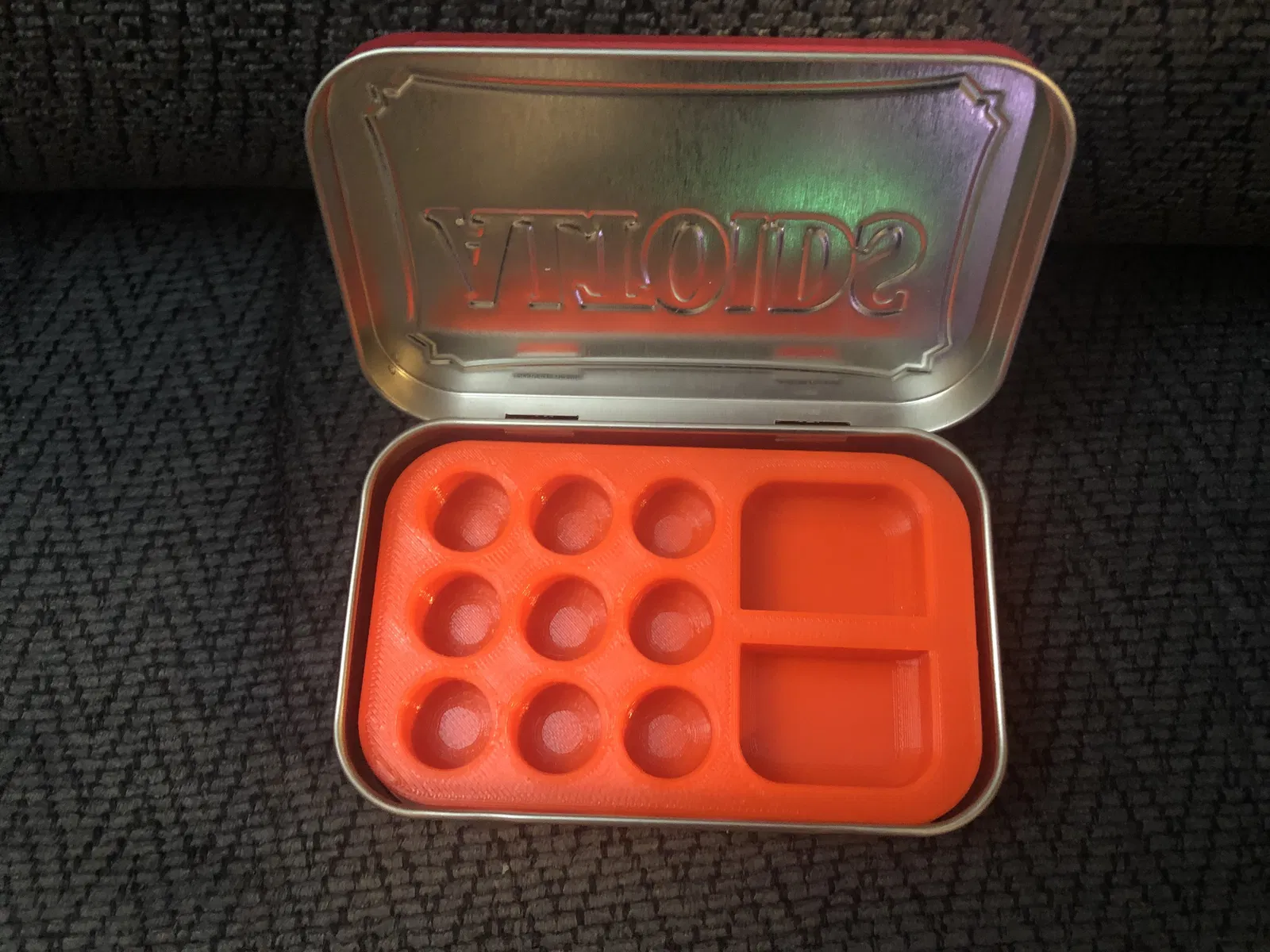 Khay insert cho hộp Altoids tin, thiết kế để đựng/chia ô màu vẽ (như watercolor). Cũng hữu ích để phân loại ốc vít nhỏ, linh kiện và đồ lặt vặt. In xong lắp vào hộp là dùng được ngay.