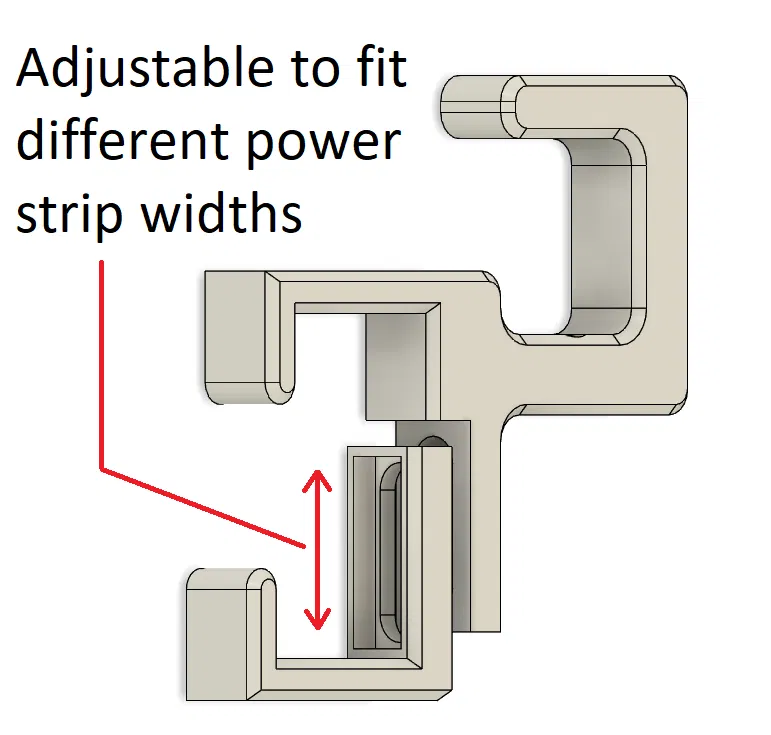- Mình thiết kế ngàm này để vừa nhiều loại power strip mình đang có. Nếu bạn dùng loại lớn hơn (ví dụ: ổ cắm 2 hàng), cứ cho mình biết chiều rộng và chiều sâu để mình chỉnh thiết kế cho đúng nhu cầu của bạn