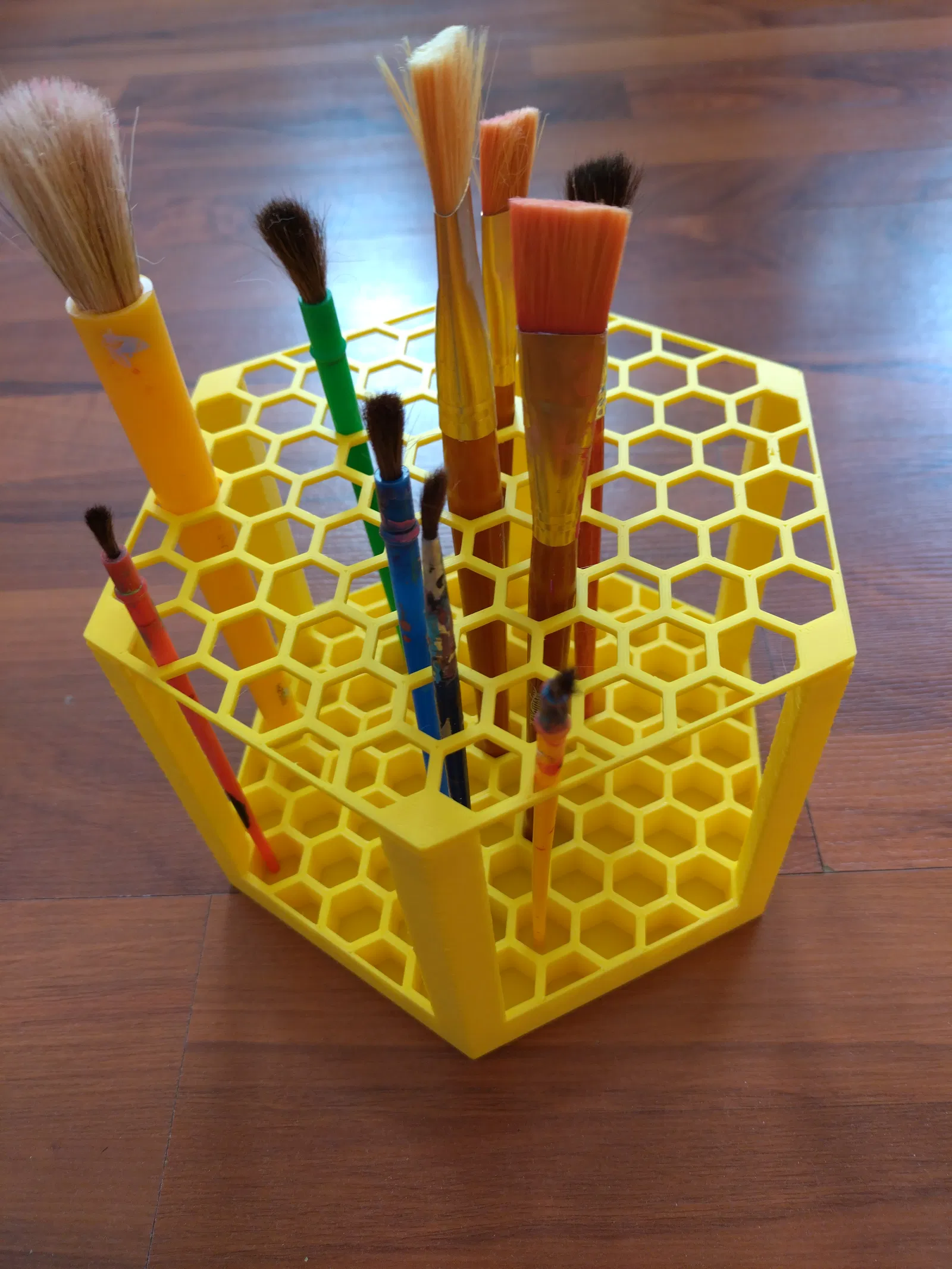 Chào mừng các anh em họa sĩ, các bạn yêu thích vẽ tranh và cả những người làm đồ thủ công tỉ mỉ! Hôm nay, chúng ta sẽ cùng khám phá một sản phẩm in 3D cực kỳ hữu ích, đó là kệ cắm cọ vẽ. Với thiết kế độc đáo lấy cảm hứng từ tổ ong, chiếc kệ này không chỉ giúp bạn sắp xếp gọn gàng các loại cọ vẽ, mà còn tô điểm thêm cho không gian làm việc của bạn.